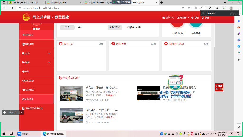 通过腾讯会议线上为毕业生团员讲解团关系转接注意事项。