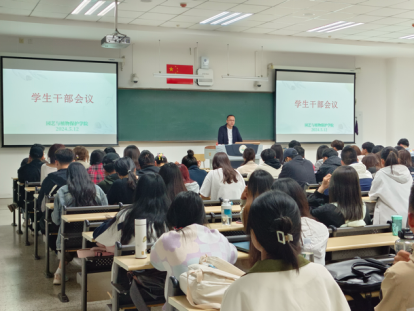 于南教118教室召开学生干部会议。会议由辅导员尚飞主持,全体学生干部参加。