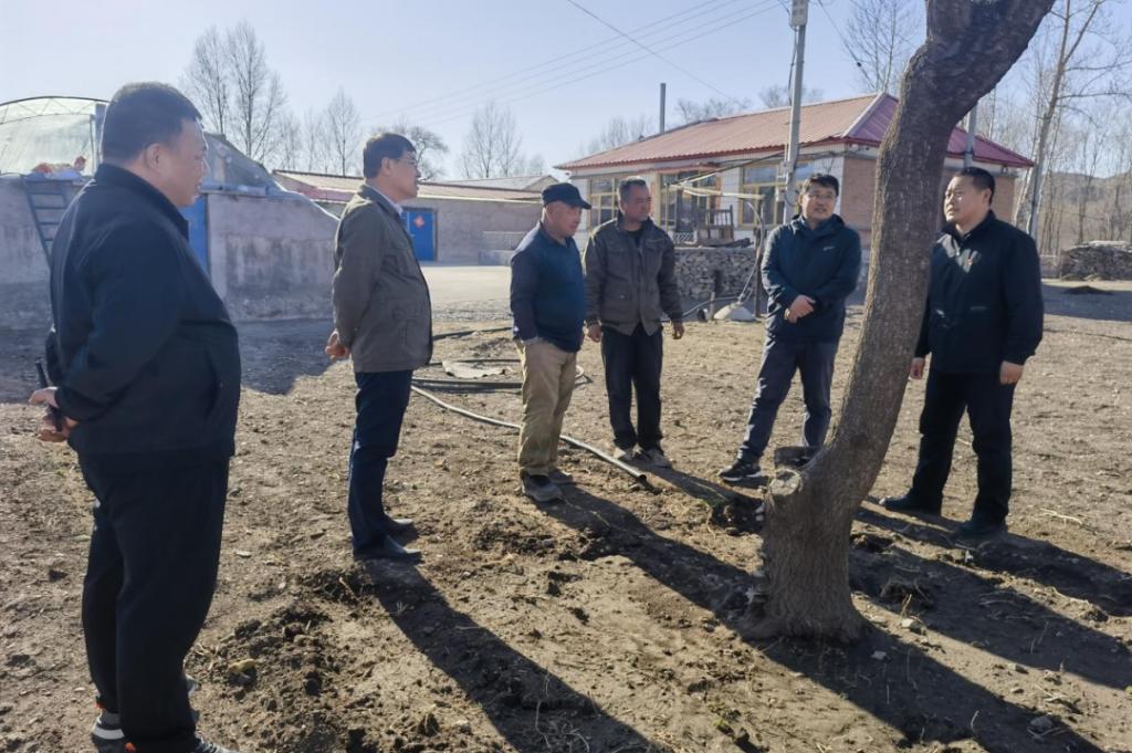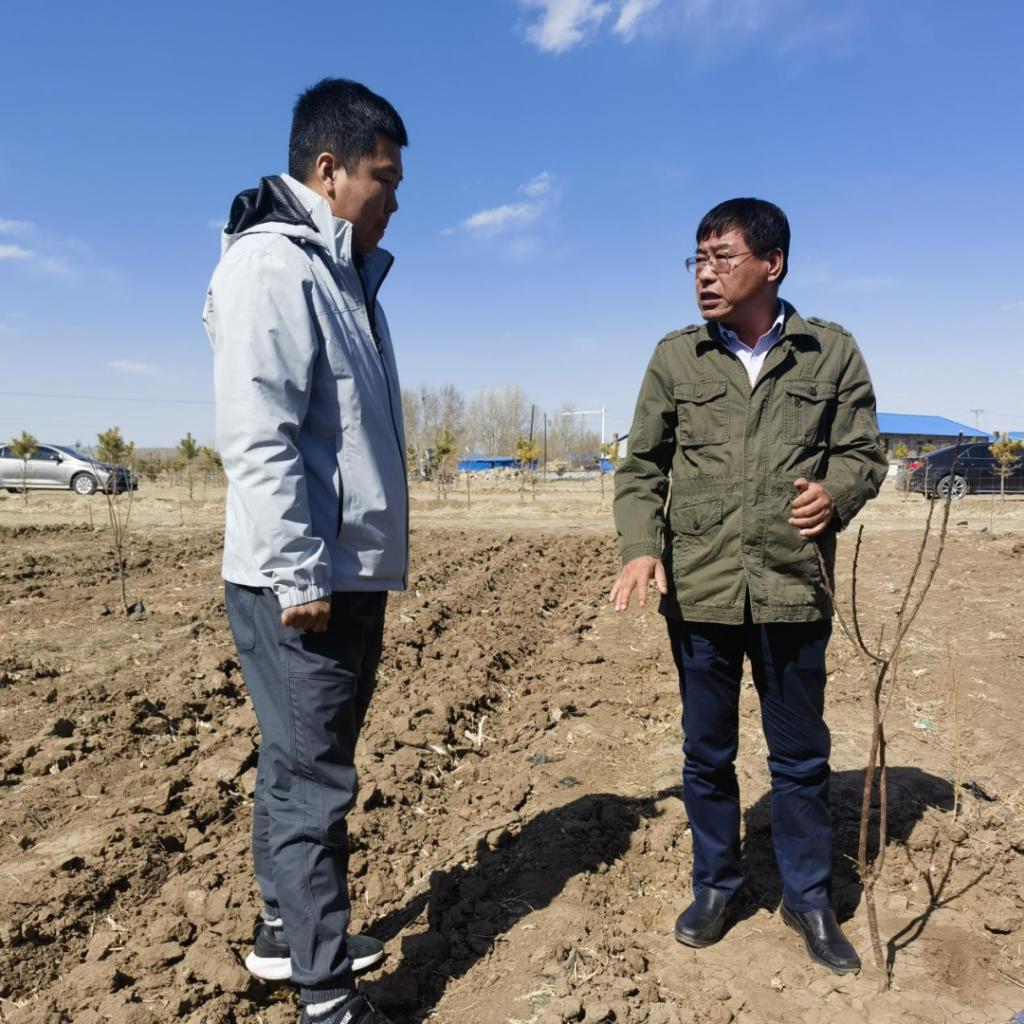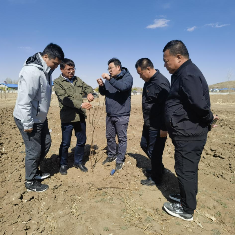 在巴日嘎斯台乡中信村,安全厅驻村第一书记塔拉带领调研小组一行参观了优质杏树品种项目基地,刘杰才副院长和杨忠仁副院长结合目前的温度、湿度等因素对杏树的生根保苗和如何提高成活率提供了技术指导。