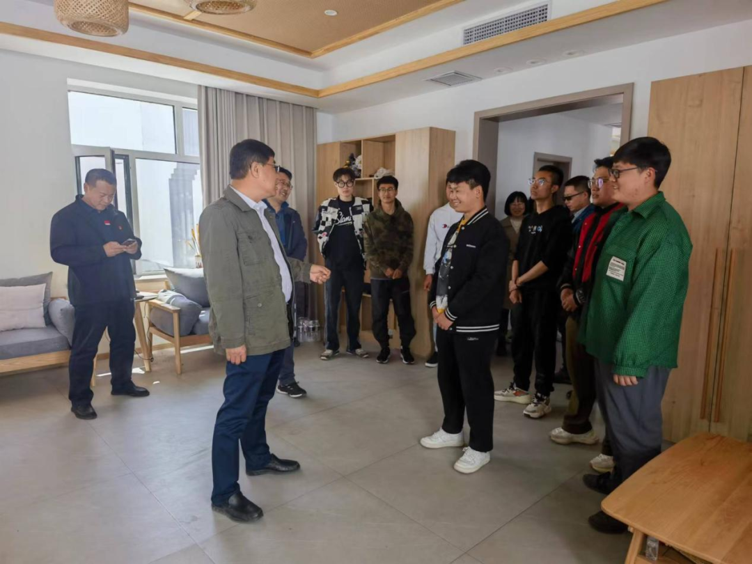 教学生产实习实践基地长期合作的集体企业。在合作社,科右前旗科技事业发展中心主任孙军贵、副主任萨如拉、工作人员杨帆及合作社法人代表单坤朋对调研小组一行表示了热烈欢迎,并召开座谈会。会上,双方首先就学生生产实习内容及今后开展实习实训方式进行探讨;其次就蔬菜新品种、新技术引进、示范、推广及促进成果转化,共同申报科研项目等确定初步实施方案。座谈结束后,调研小组一行看望了正在合作社进行生产实习的2020级设施农业科学与工程专业的部分学生,走进同学们生活学习的宿舍,叮嘱大家要“眼里有活儿”,将书本上学到的理论知识真正运用到田间地头,提高实干本领。