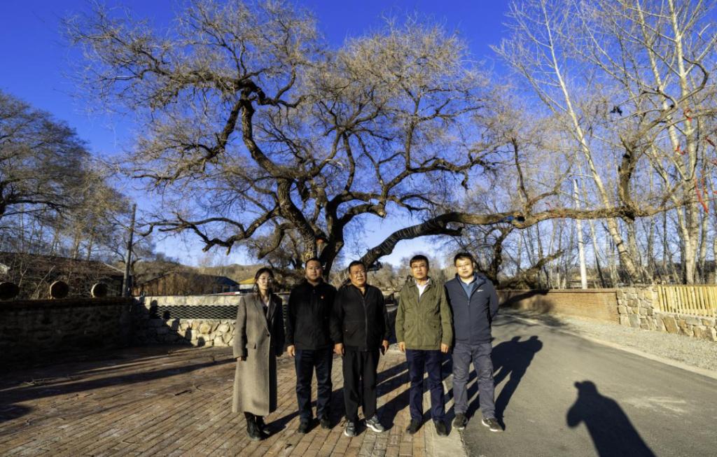 在混都冷嘎查,我校驻村第一书记闫文彬老师带领调研小组一行参观了嘎查党群服务中心,详细介绍了他的办公场所和驻村工作开展情况,在村支书老闫书记的陪同下一行人深入到农户宋大叔家中,实地考察农户大棚种植情况,还参观了嘎查电商项目和种羊基地。闫文彬老师介绍,“下一步将重点以项目带动产业发展,调动农户积极性,助推乡村全面振兴。在这个过程中,嘎查村需要大量的有志青年来充实队伍力量,希望有理想、有梦想的青年人能勇敢地投身到基层,在这片广阔的天地中实现自身价值”。最后,闫文彬老师带着调研小组一行来到海力森嘎查,“海力森”系蒙古语,意为“有榆树的地方”,自古榆树生长茂盛,这里生长着树龄500余年的榆树,海力森嘎查也在2019年获得“中国少数民族特色村寨”称号。