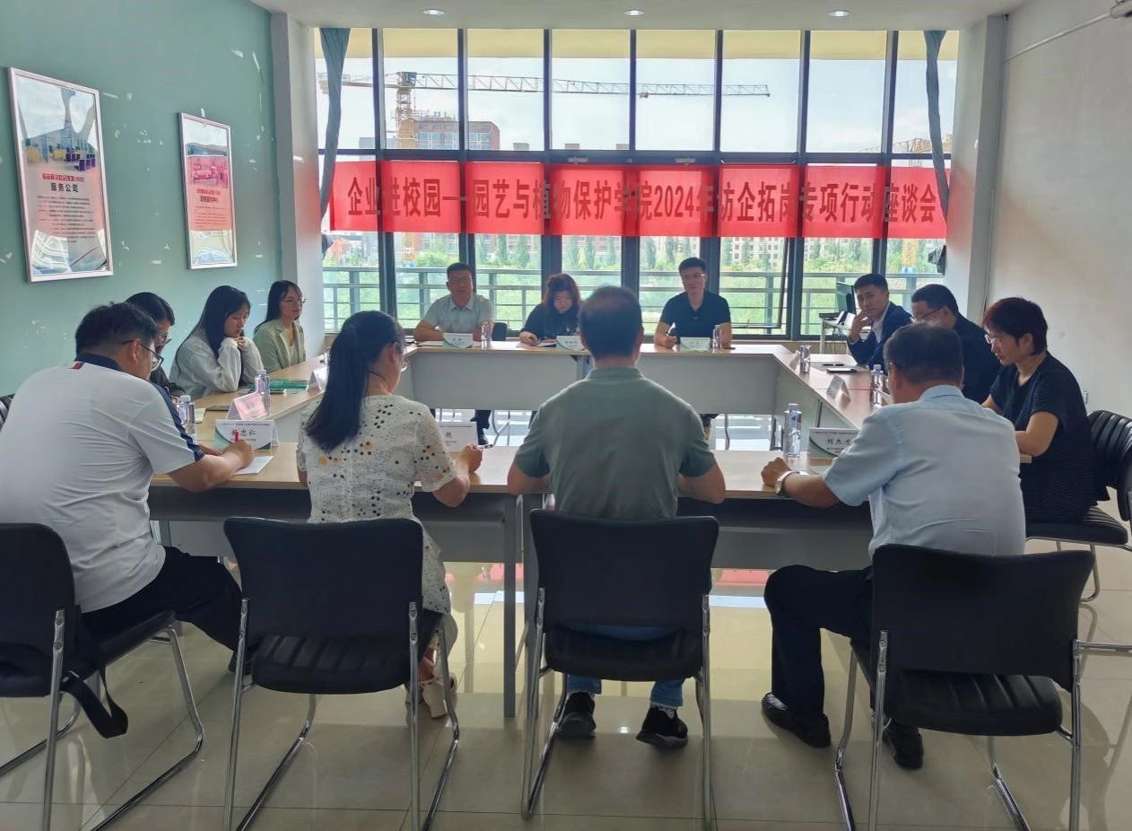 于5月25日上午邀请内蒙古民丰种业有限公司副总经理兼人力资源总监夹书玲、内蒙古中加农业生物科技有限公司副总经理刘广晶、中国平安财产保险股份有限公司内蒙古分公司人事行政部员工服务室经理赵佳兴、南京集思慧远生物科技有限公司大区总监郑昊楠、内蒙古蒙新农种业有限责任公司总经理韩璐明、内蒙古绿海浩康园林景观生态有限责任公司总经理张强、鄂尔多斯市丰禾日丽农业开发有限公司人事专员荆爱莉、古华茂日盛生物科技有限公司行政经理王再誉进校开展“访企拓岗促就业”专项行动之“企业进校园”座谈会。学院院长周洪友、党委副书记李艳、副院长刘杰才、副院长杨忠仁、招生就业办公室负责人王荣参加座谈会。