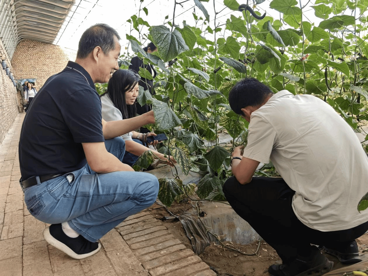 下午,周院长一行在鄂尔多斯农牧局种植业科科长苗春乐的带领下来到兴泰集团和牧牧业有限公司的温室种植大棚进行参观,公司总经理贾欢欢对公司情况及大棚种植作物等情况进行了详细介绍。贾经理表示,希望学院能为公司输送优质人才,提供更先进的技术指导,助力公司更好发展。在参观过程中,对于大棚作物出现的病菌及其他生长问题周院长一行也提出了具体的解决方案。