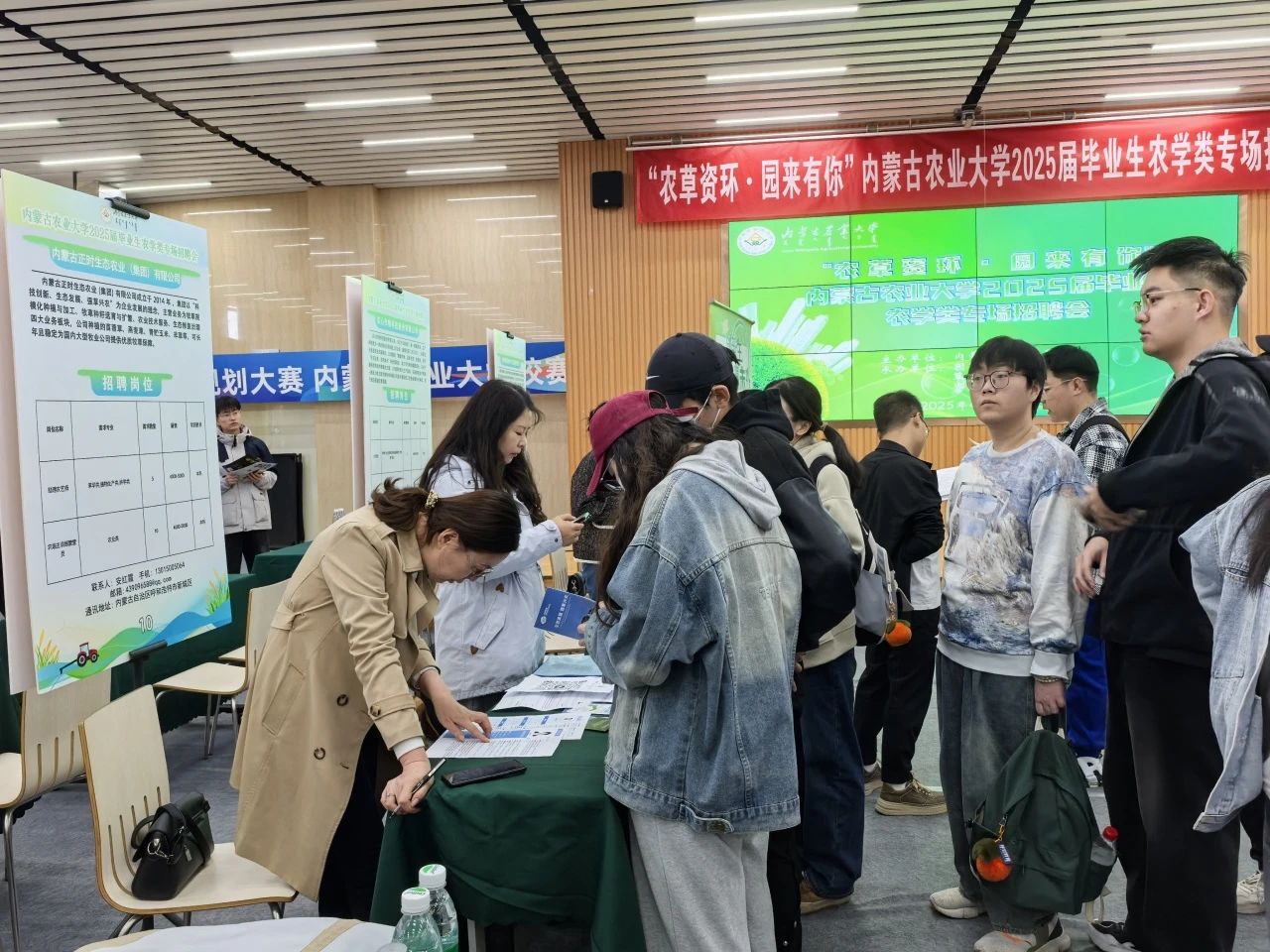 本次招聘会立足农学特色,聚焦国家乡村振兴与生态文明建设战略需求,凸显学科服务地方经济的支撑作用。参会单位中,超60%为内蒙古本土企业,为毕业生留蒙就业提供优质机遇。同时,京沪粤等地区企业的参与,进一步拓宽了毕业生就业地域选择,推动人才流动与区域协同发展。参会企业包括蒙草生态、正邦集团、民丰种业等知名企业,覆盖农业全产业链,为毕业生提供多元化的职业选择。