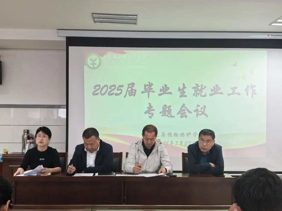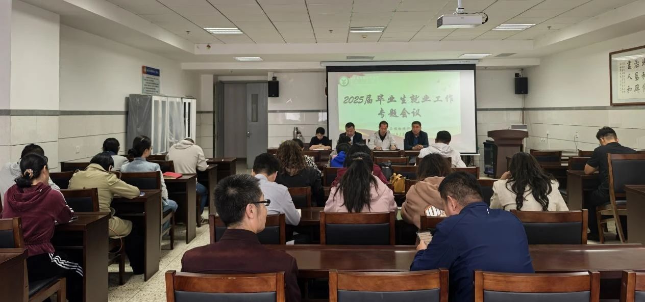 在生科楼419会议室召开2025届毕业生就业工作专题会议。院党委书记靳国斌、院长周洪友、党委副书记李艳、副院长刘杰才,以及全院教职工出席了会议,会议由院长周洪友主持。