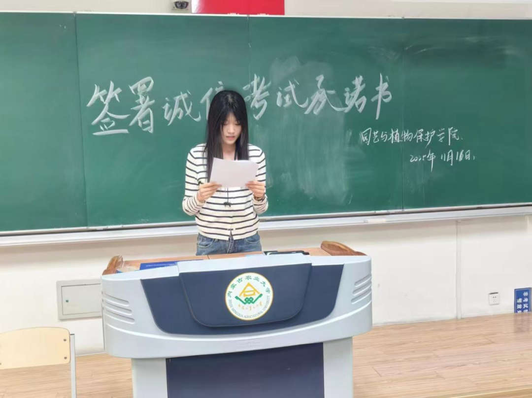 组织2025级全体考生于南教501、518、524教室集中开展《诚信考试承诺书》现场签署活动,其他年级学生以班级为单位组织参与。