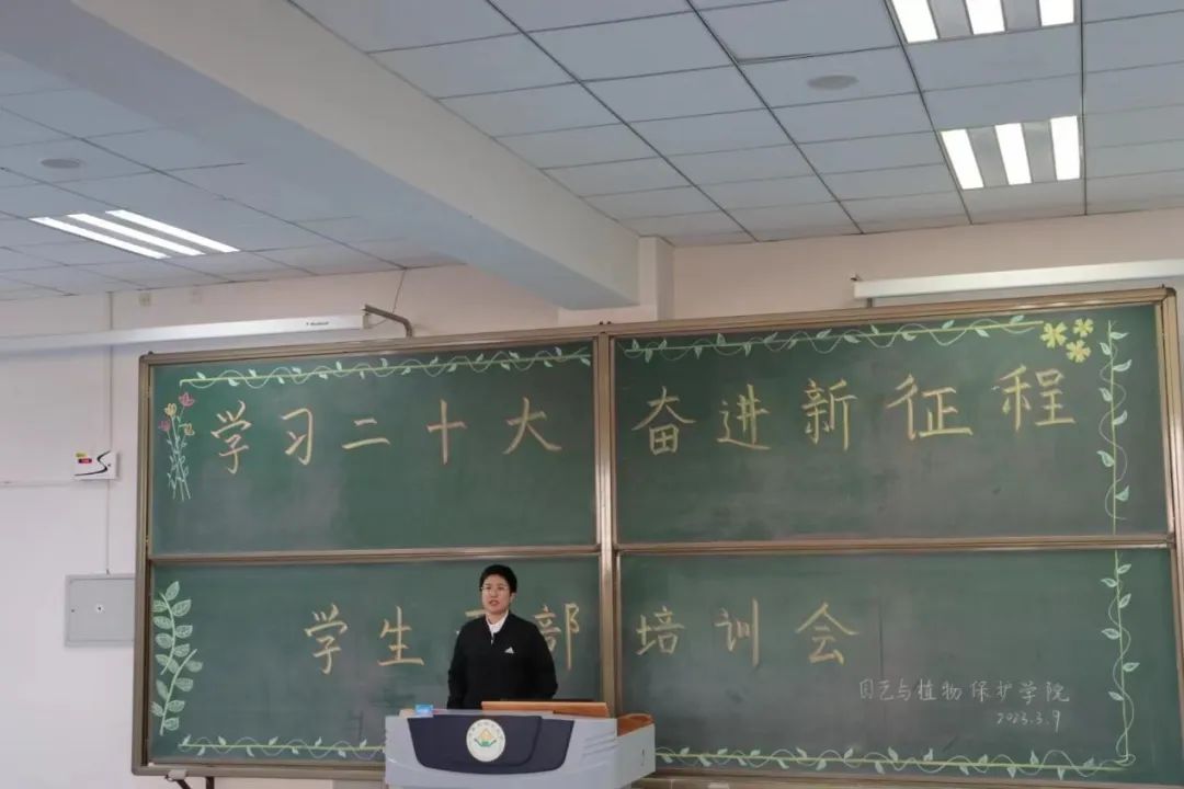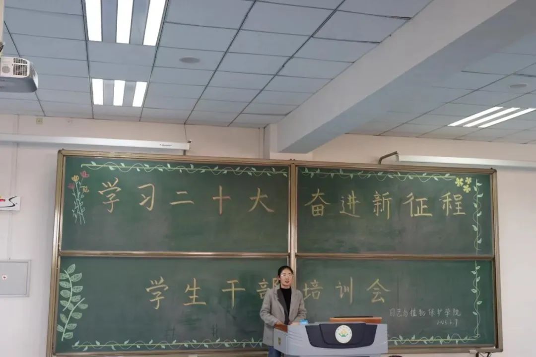 招生就业办公室老师王荣讲到学生干部要学好文化课知识,将学生干部首要任务完成好,主动有为,积极为学校服务,在实践锻炼中不断获得成长。面对考验不气馁,不打无准备之仗。