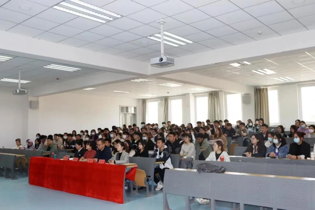 于南教114召开“学习二十大 奋进新征程”学生干部培训会。党委副书记李艳,组织员尤丽,学生办公室老师尚飞、招生就业办公室老师王荣出席本次会议,团委老师郝凤英主持会议,全院共计200余名学生干部参会。