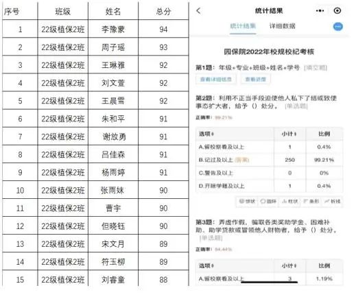 组织学生进行线上校规校纪考试,全体大一学生和部分高年级学生参与。
