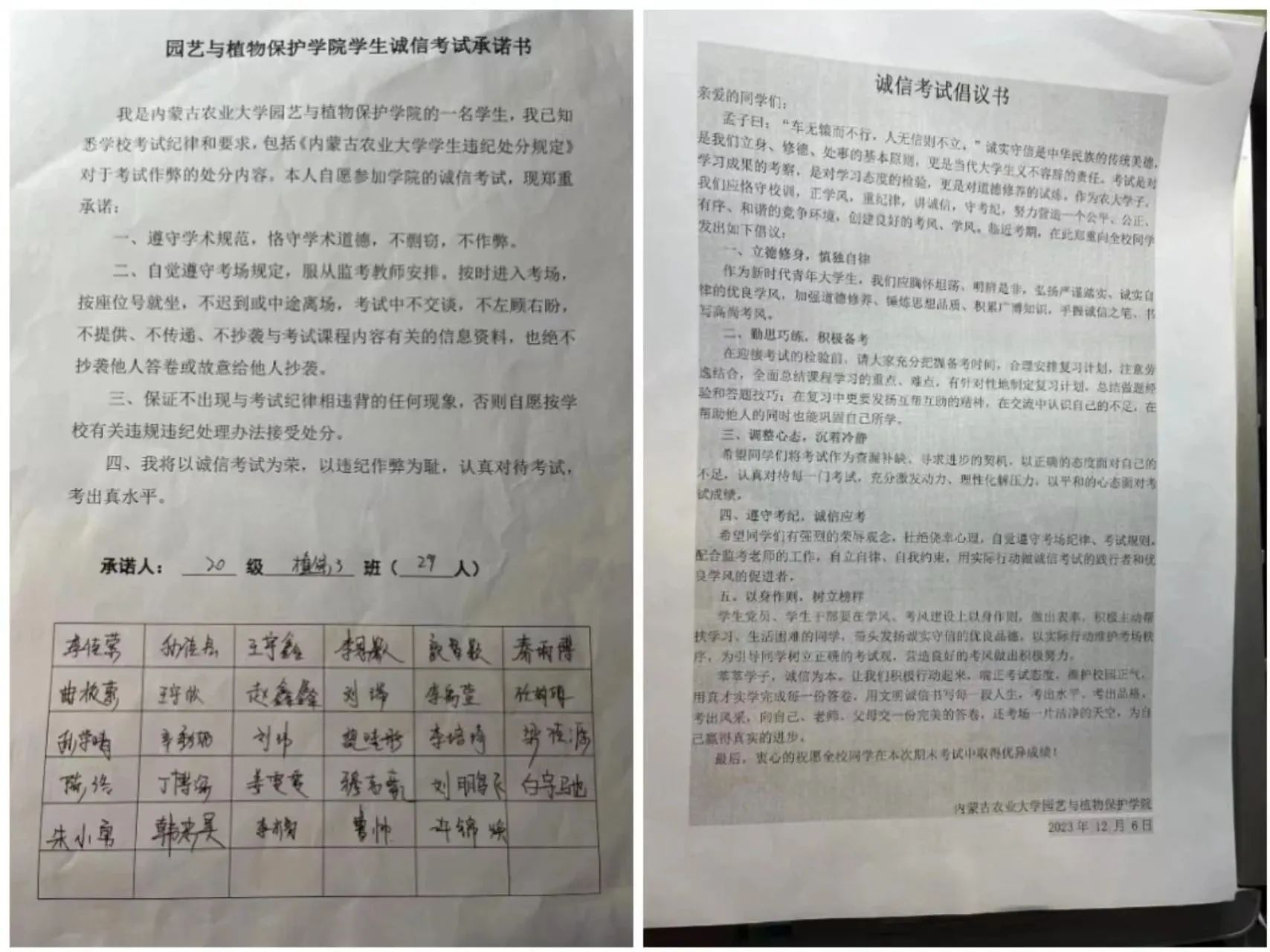 首先,学风建设中心但晓钰同学和薛雯静同学分别在南教326和223教室宣读了《诚信考试倡议书》和学生手册中有关考试作弊行为的处理规定,呼吁大家端正考试态度,维护校园风气。