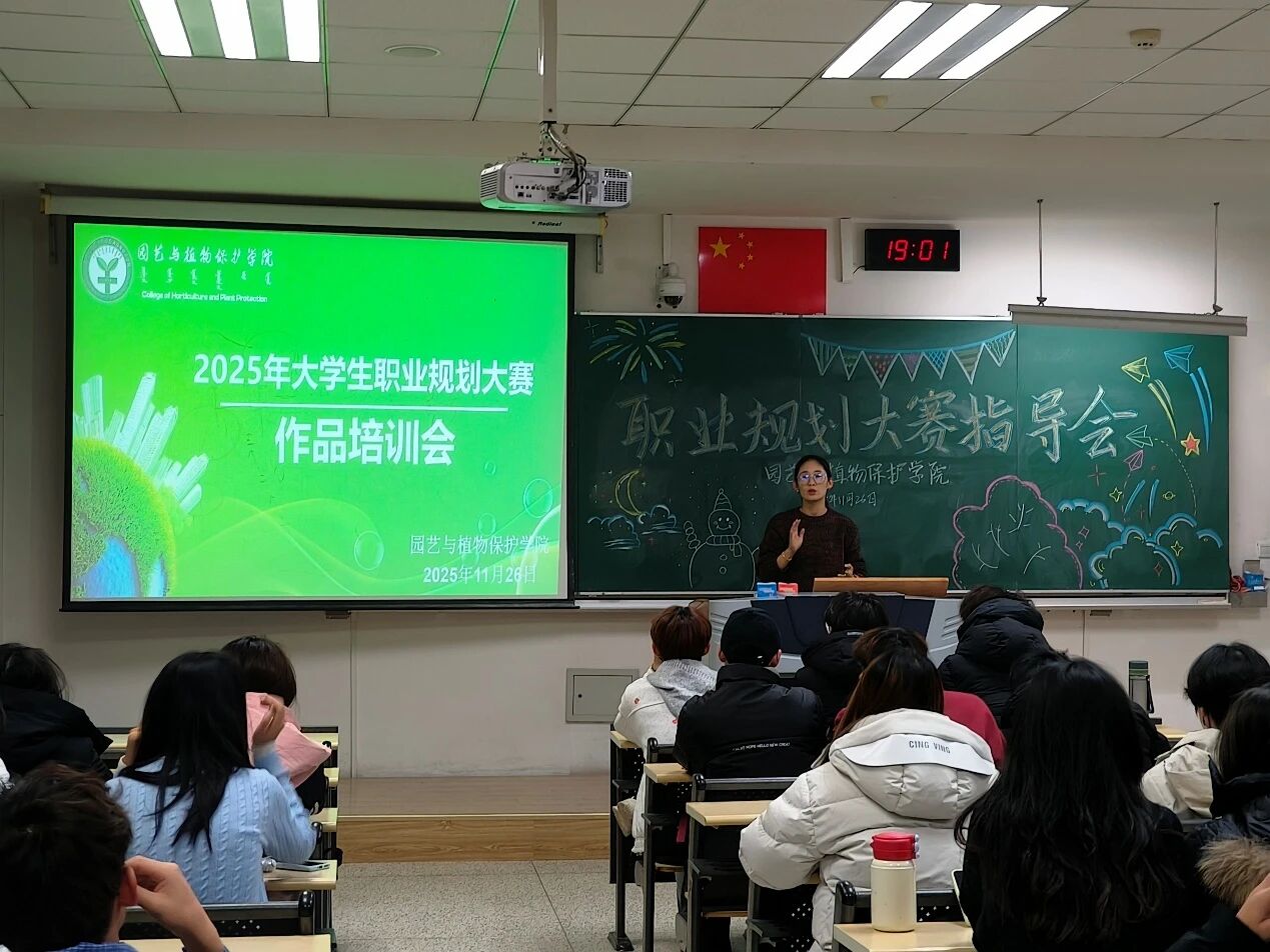 培训会上,王荣老师结合大赛评分细则,从职业目标设定、规划书撰写逻辑、答辩技巧等多维度进行系统讲解。针对园艺、植保以及设农和农药四个专业的行业发展趋势与就业方向,老师引导学生要将个人职业规划与目标职业紧密结合,科学制定发展路径,并给大家展示了历届优秀参赛选手的作品。最后,王荣老师详细解答了同学们在备赛过程中遇到的各种问题和困惑,她鼓励大家积极参赛,挖掘自己的能力,为未来的职业道路打下坚实的基础。