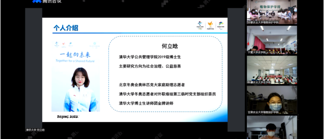 青年成长论坛第五季第一期通过腾讯会议正式开播。本次活动以“冬奥零距离,青春向未来”为主题,由中国农业大学植物保护学院主办,全国30所高等院校联合举办的冬奥“思政大课”。