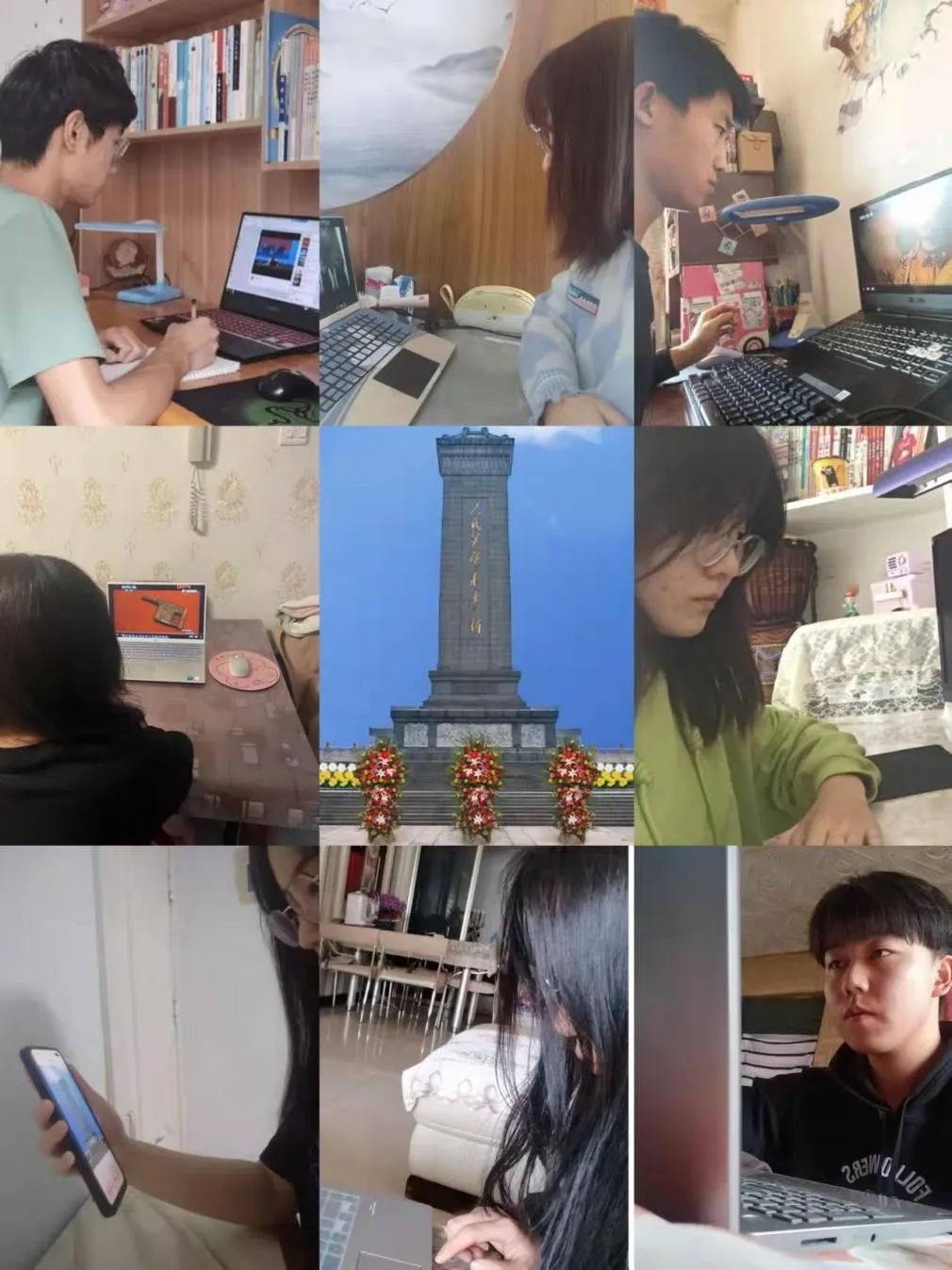 学子线上学习英烈事迹图片。