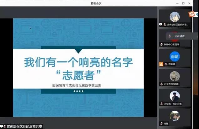 于11月19日举行青年成长论坛第四季第三期之“我们有一个响亮的名字’志愿者’”,19级园艺一班李萌、20级植物保护一班张煜、19级设施农业科学与工程二班邢彩玉担任本期主讲人,活动共计200余人参加。