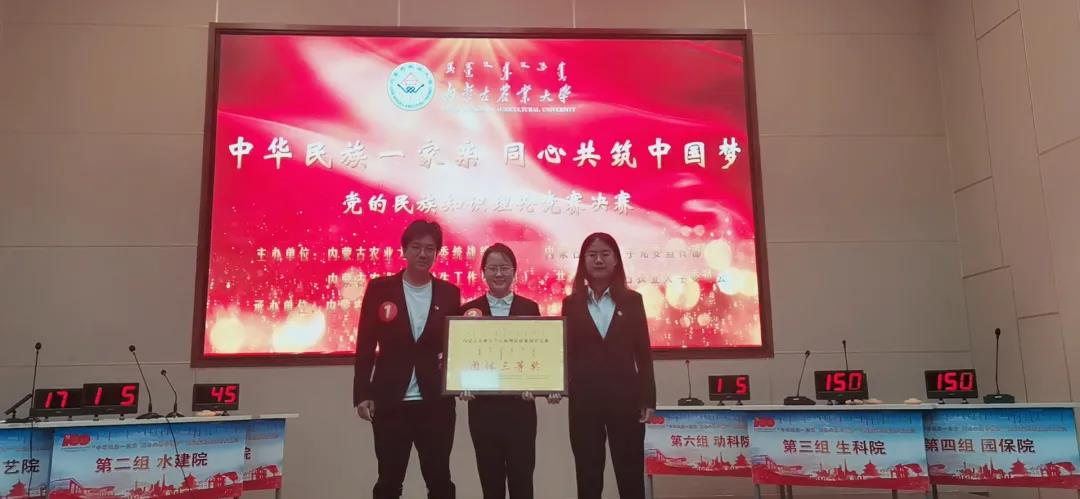 经过前期初赛,168开奖官网 选从18支代表队中脱颖而出,进入激烈的决赛比拼。决赛中,必答题环节表现了选手扎实的民族理论知识功底;共答题环节,展现出了大家相互合作的一面;抢答环节,大家敢拼敢搏,积极抢答。经过激烈的比分追逐,在168开奖官网 选手共同努力下获得了团体三等奖的好成绩。