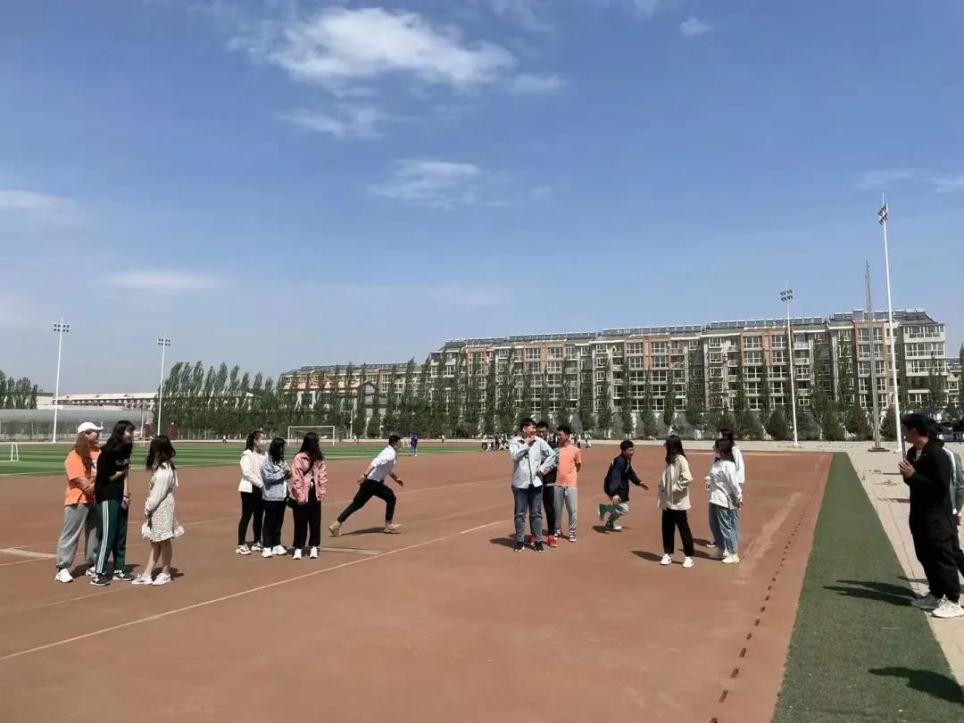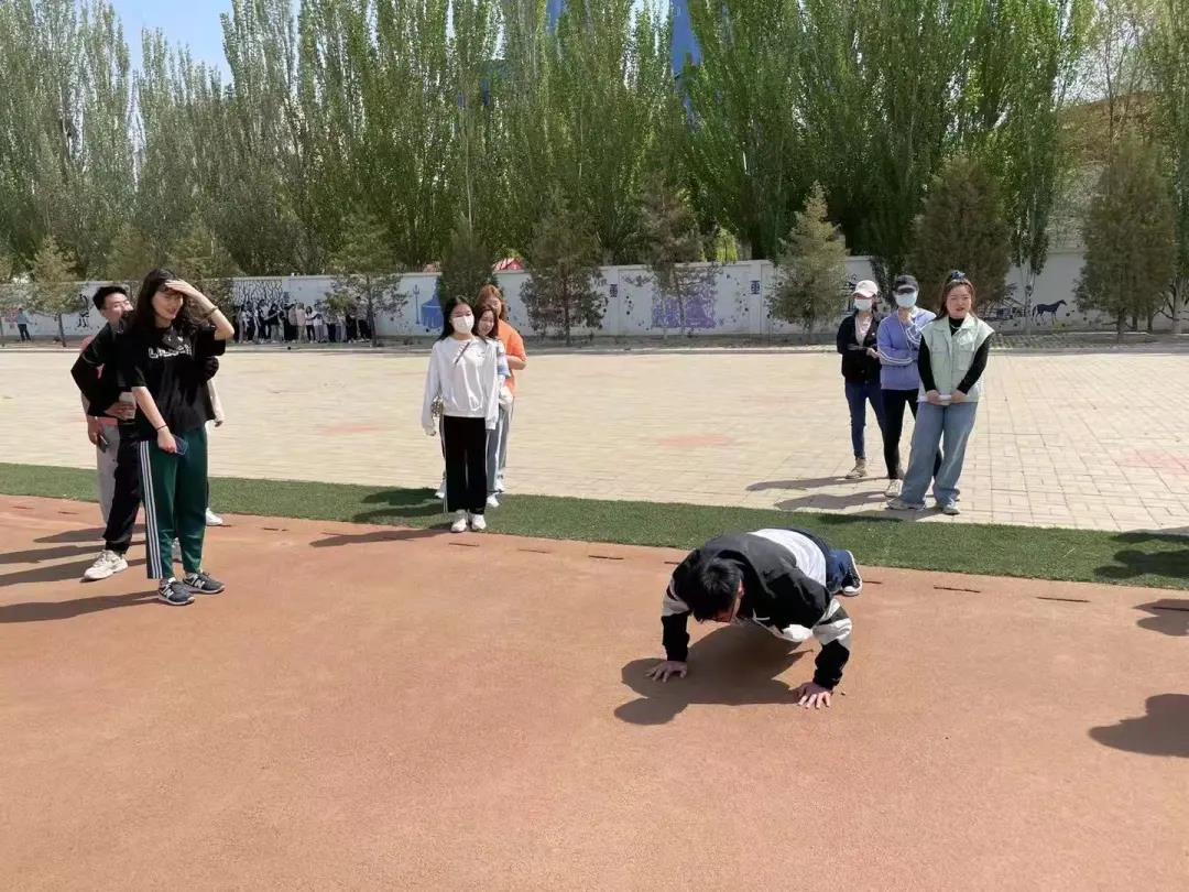 第二项,你追我赶。两支部学生每三人分为一组围圈而站,一人跑一人追,跑进组内则队尾的人继续跑,追人者超过一分钟未追到人则为失败,进行惩罚,男生十个俯卧撑,女生十个蹲起。