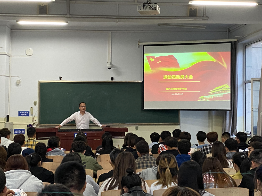 于4月22日召开运动员动员大会,学办老师尚飞及全体运动员出席本次会议。