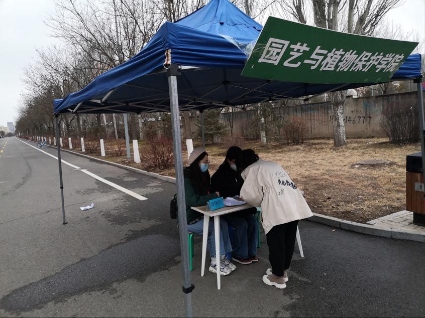 虽然近几日的呼和浩特的天气依旧很寒冷,但同学们脸上仍洋溢着开学的喜悦。同学们拿着自己的行李从设立的报到处进入。随后返校的同学们在志愿者的帮助下,填写返校登记表,测量体温并进行消毒。两天的志愿者工作,同学们顶着寒风,始终坚守在岗位,迎接着同学们的返校归来。