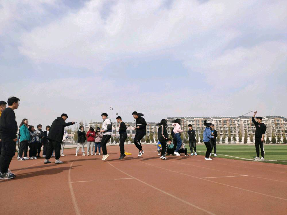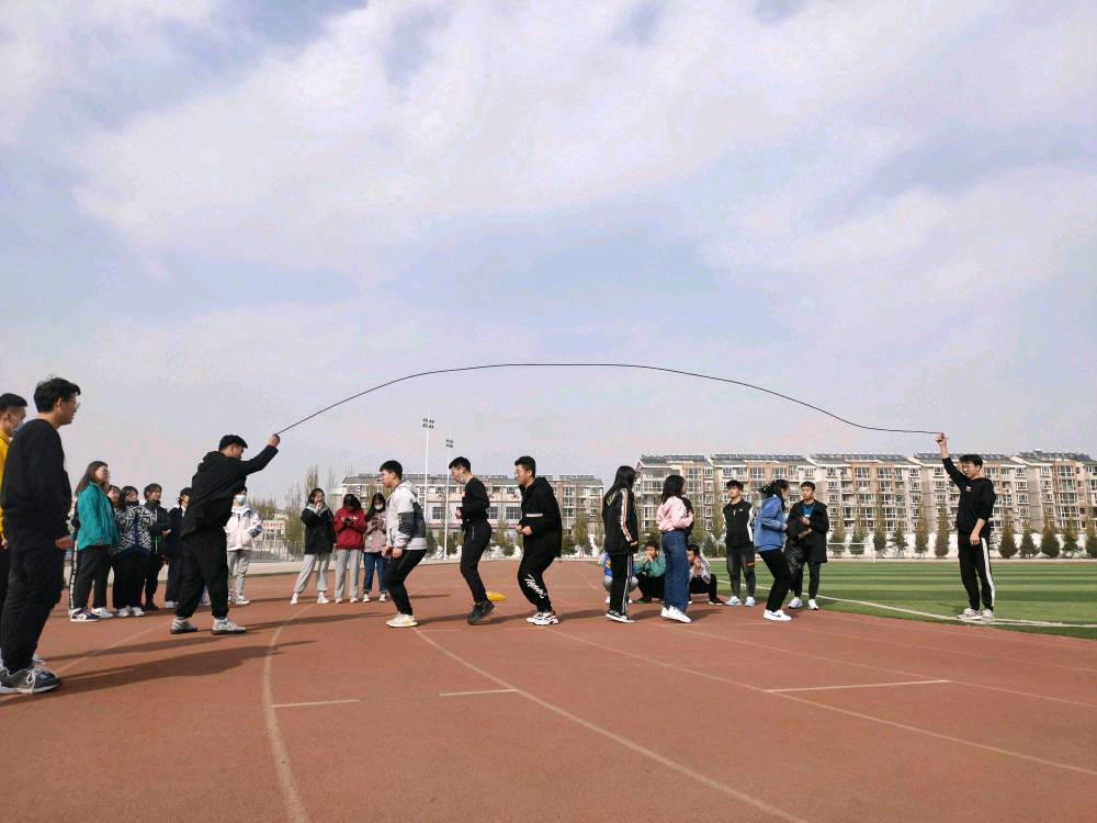 在内蒙古农业大学新校区操场上举行跳绳选拔比赛。