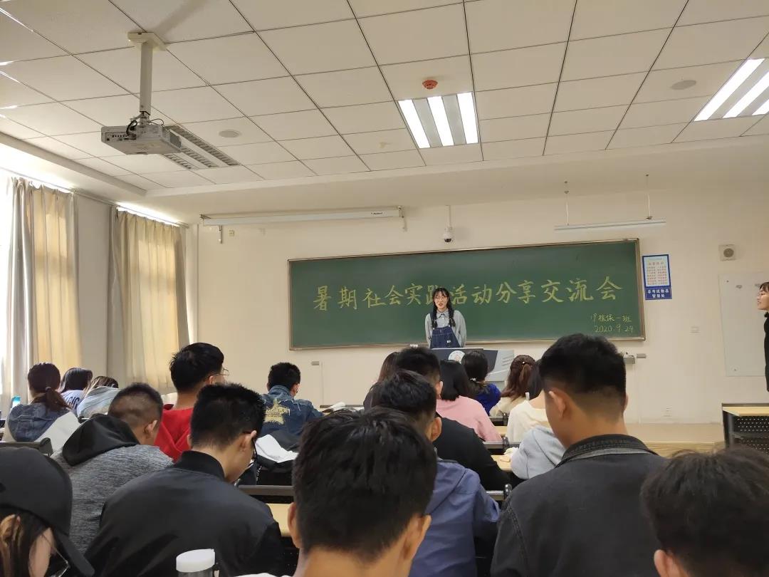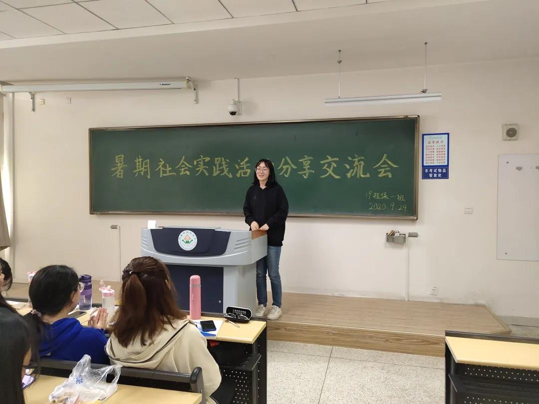 活动开始,赵文多首先对大家的社会实践活动做了简要的活动介绍,并邀请社会实践分数优秀的几位同学上台来分享他们的社会实践经验。其中,梁苏同学讲到她报名参加了养老院的服务活动,经常去养老院打扫卫生,和老人们坐下来交流,她向同学们分享到:能在一个平凡的假期里去做一些有意义的事,假期也就变得充实多了。