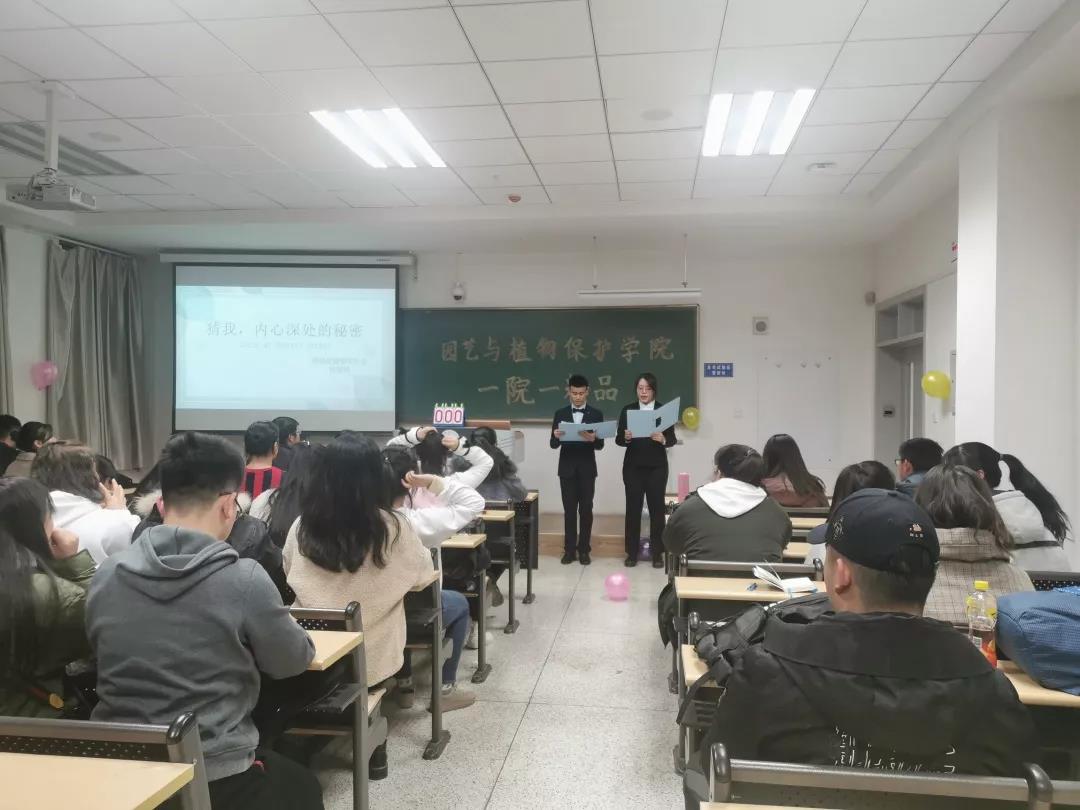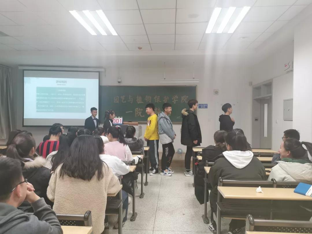 梁苏、孙嘉乐等同学精彩的开场舞蹈调动了现场氛围。在随后的游戏环节中,19级植物保护、设农、园艺三个专业分别派出5个成员组成一组队参加游戏,在主持人给出信息后,每个人依次向下个人用肢体语言传递信息,最后的同学给出的答案与主持人给出的信息一致方才成功,此游戏内容考验了同学间的默契能力。在观看电影《沉默的羔羊》片段时,大家深刻的感受到每当合法权益受到侵害时,我们要及时维护自己的权益,不能做一只沉默的羔羊。在“我在未来等你”环节,每个同学写下了自己对未来的畅想,对大学四年生活的期待。