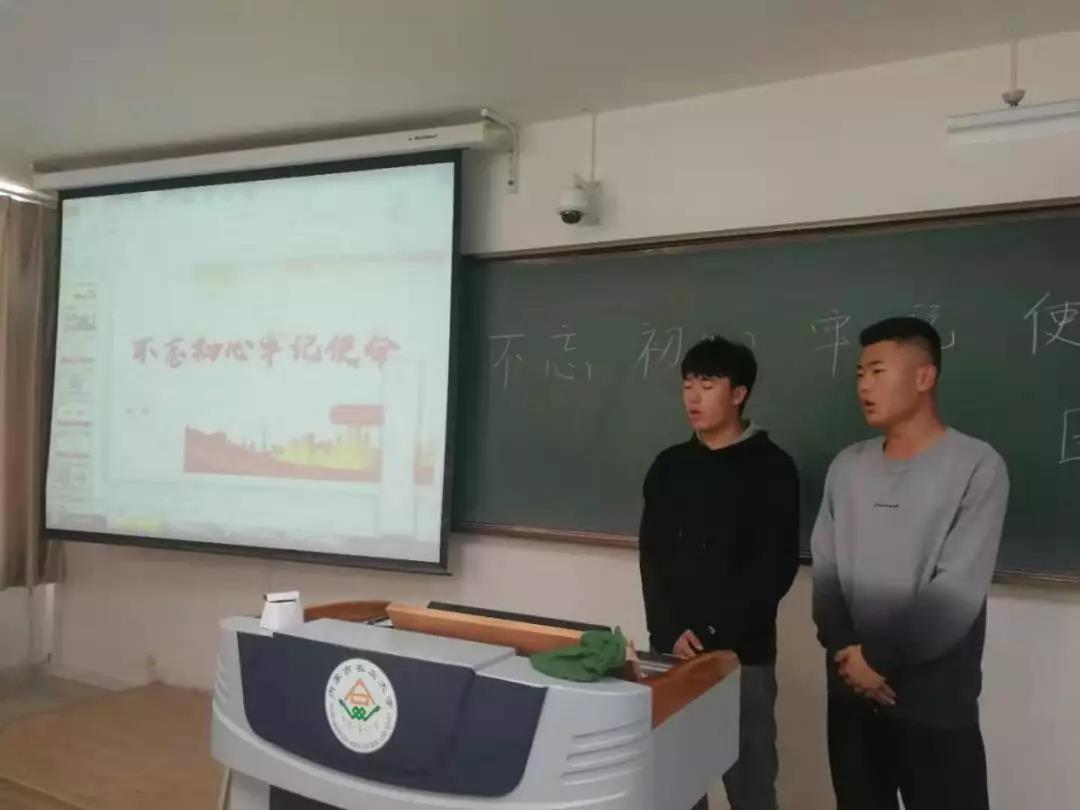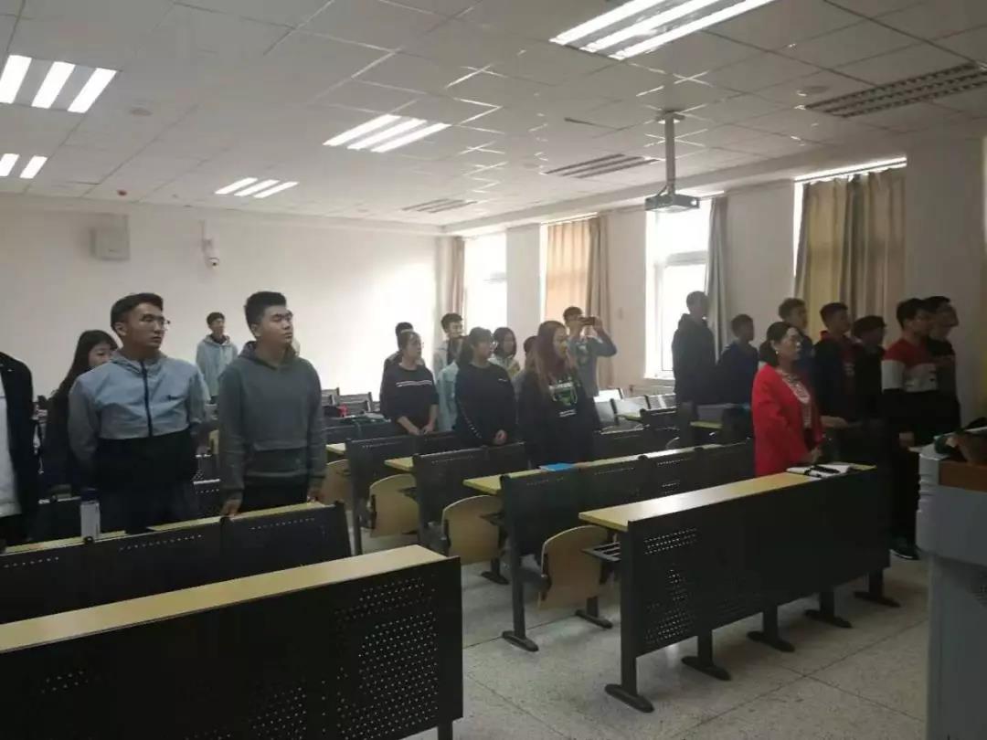 本次活动由贾玉栋主持。会议伊始,同学们全体起立庄重而又严肃的奏唱国歌。随后李浩和孙旭杨同学深情朗诵关于“不忘初心、牢记使命”的文章,唤醒同学们体内的“红色基因”,希望每一位同学将“红色基因”一代代传承下去,从而真正汇聚起实现伟大中国梦的磅礴动力。