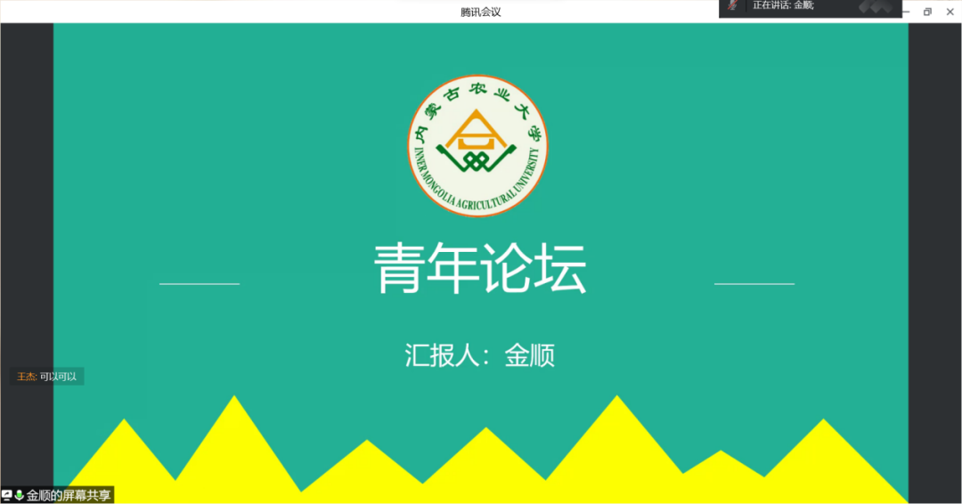于腾讯会议举行第五季第三期“绚丽青春,植手同行”青年成长论坛。此次活动由宣传部干事张艺佳担任主持人,金顺、刘璐、张东三位同学作为分享嘉宾。