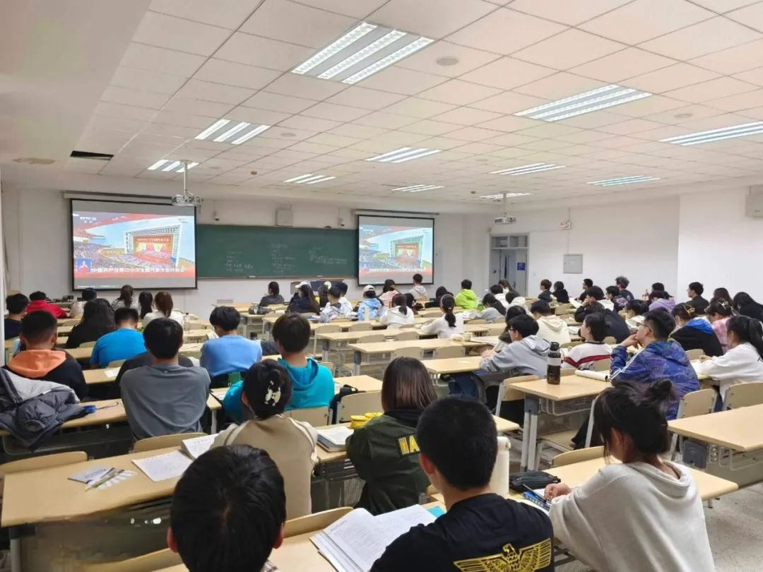 2022级学生于南教625、626教室集体观看党的二十大开幕会。