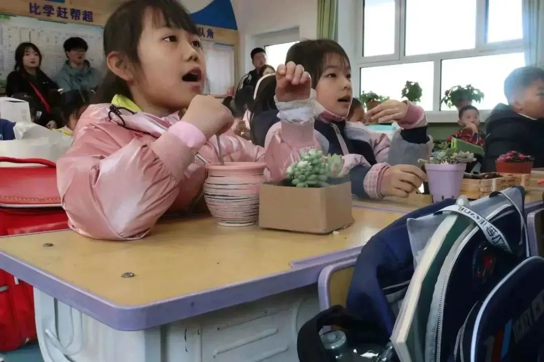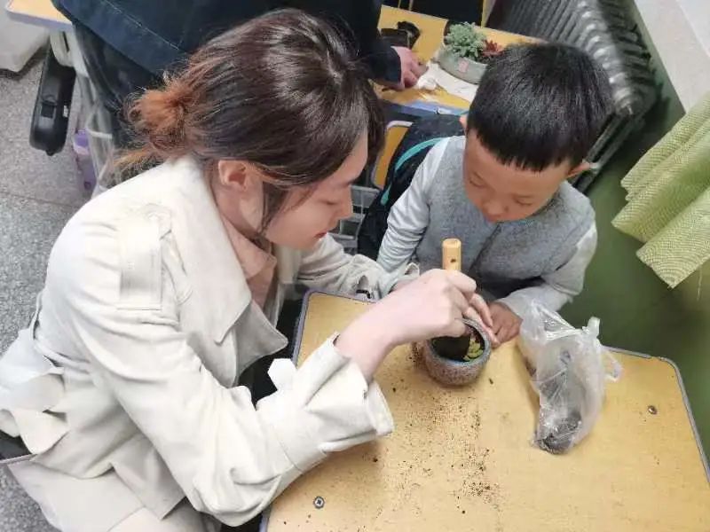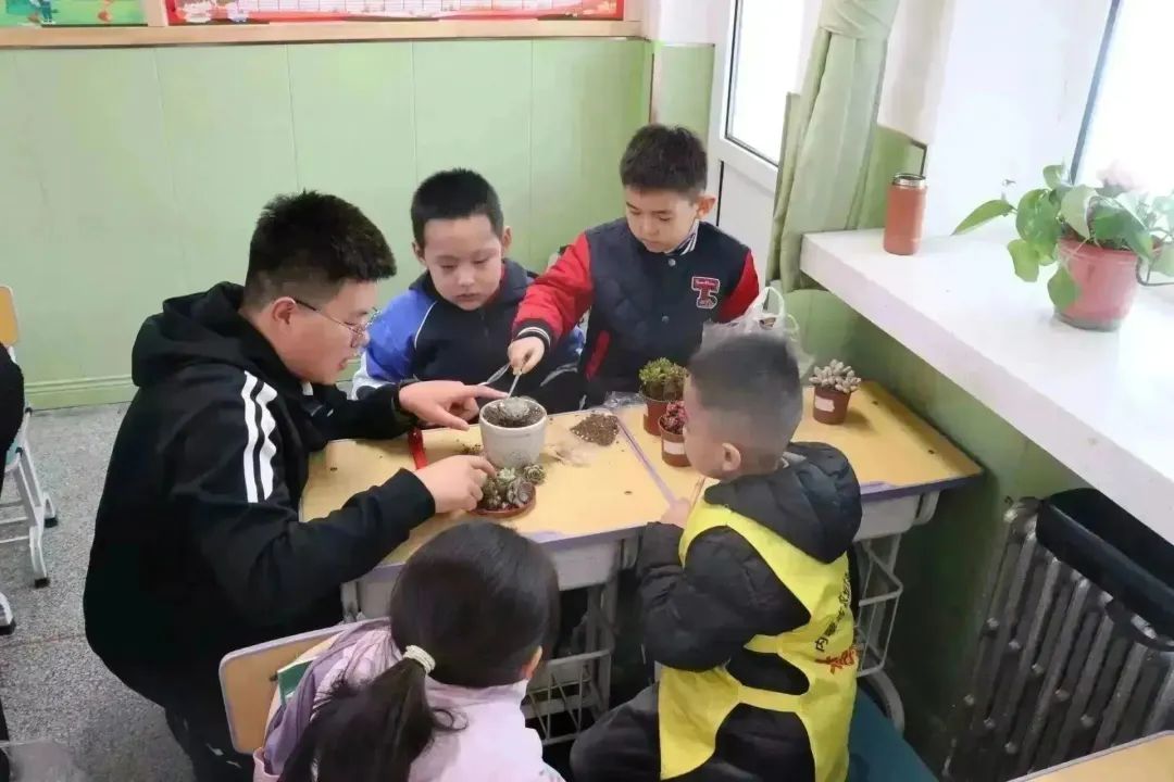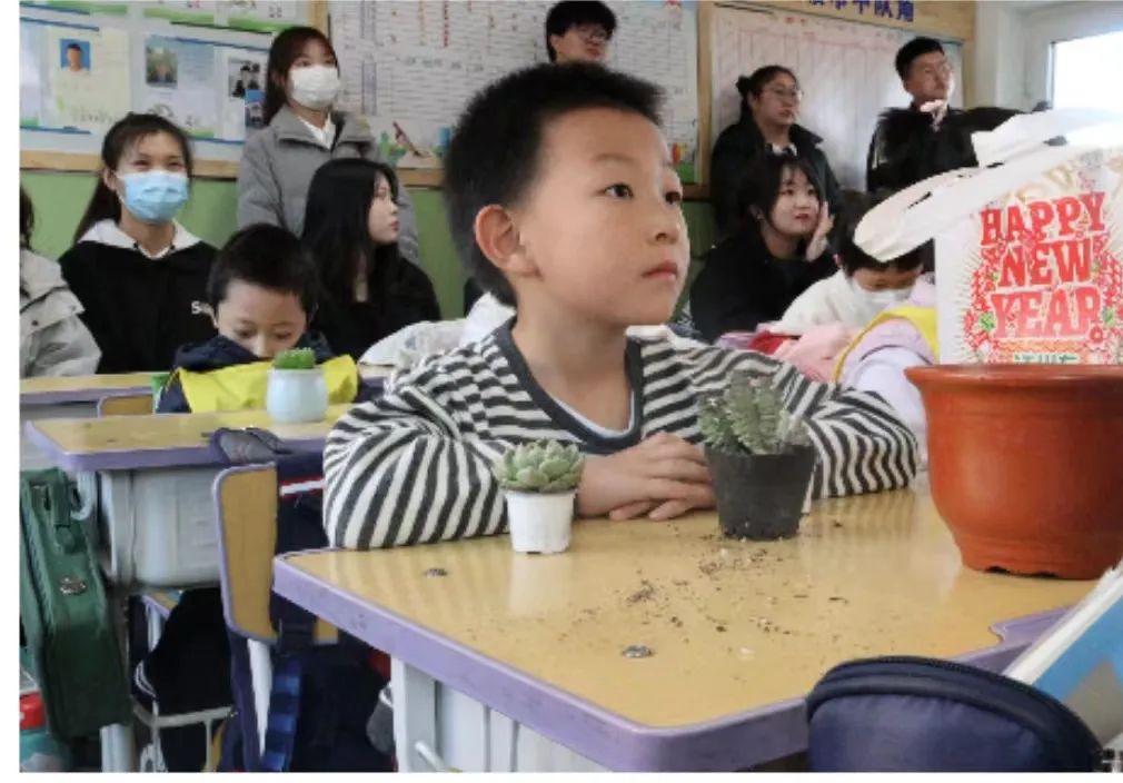园艺本科生党支部党员代表、学生干部代表共13人在学院团委老师郝凤英、招生就业办公室老师王荣带领下来到内蒙古农业大学附属小学一年级(2)班开展“‘植’此相遇,绿色同行”多肉植物盆栽体验活动。