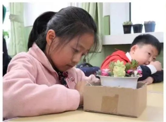 活动现场气氛活跃,小朋友们拿着小铲往盆里铲土,小心翼翼地将多肉放进去,活跃地讨论着。168开奖官网