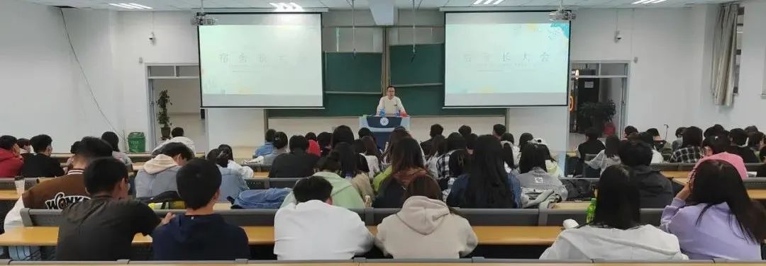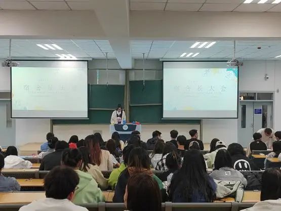 在南教104教室召开宿舍长大会。此次会议由学院辅导员尚飞老师主持,学院宿管部同学及全体宿舍长参会。