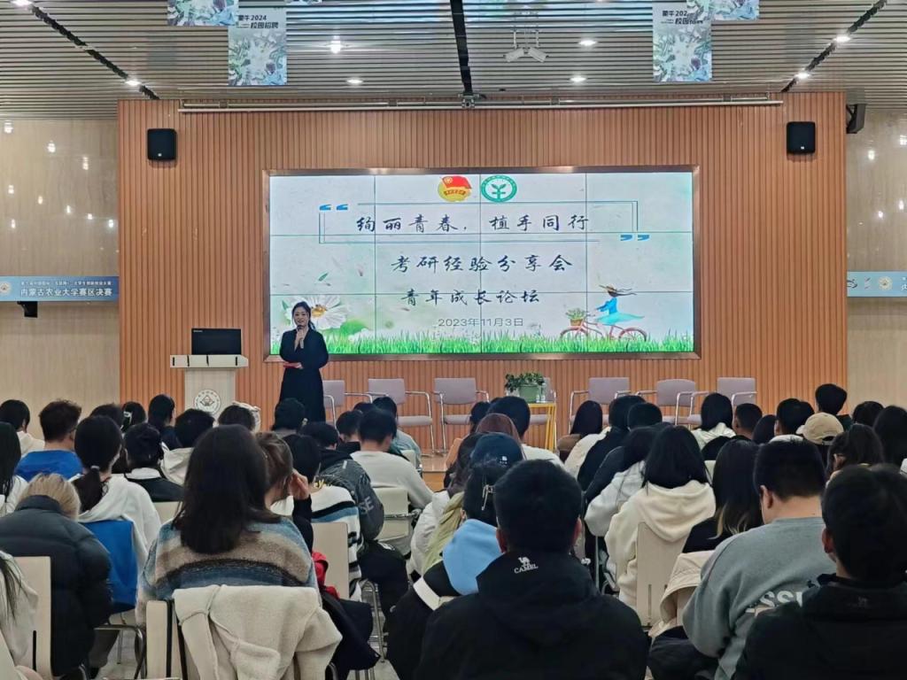 活动中,主持人风趣幽默地提问,引导嘉宾们从不同角度分享了自己的考研故事。16级园艺二班王蕊分享了自己保研后选择留在本校读研的原因,让同学们对考研时的“去”与“留”有了更明确的选择,同时,她建议同学们在压力大时可以通过看书和运动来缓解。18级园艺二班徐磊分享了考研过程中学习英语的方法,从背单词到听听力,徐磊告诉同学们一定要坚持,在想要放弃的时候及时调整心态,以乐观的心态备战考试。19级园艺二班张芷若讲到考研科目的转变以及志愿的转换,提出要根据实际情况适时调整,选择一条最适合自己的路,制定合适自己的目标,为自己选择的目标而努力。19级设农一班刘岩对于考研的学校和专业的选择给大家讲了自己当初是如何选定的,选定的时候要结合自身复习程度,他鼓励同学们想要挑战跨专业报考要早些做准备,打好基础努力学习。19级园艺二班梁朝阳主要讲述自己的每天三小时“无干扰”学习法,很好地平衡了工作和学习,在最后的冲刺阶段努力克服困难成功上岸。19级设农二班潘智伟讲述了在自己的“战友”女朋友的督促下,两人是如何相互监督,共同成为更好的自己。最后,活动设置了问答环节,台下的同学们踊跃提问,各位嘉宾们耐心细致地解答同学们对于考研提出的相关问题,致力于激发大家学习的热情,解决大家学习和生活中遇到的问题。