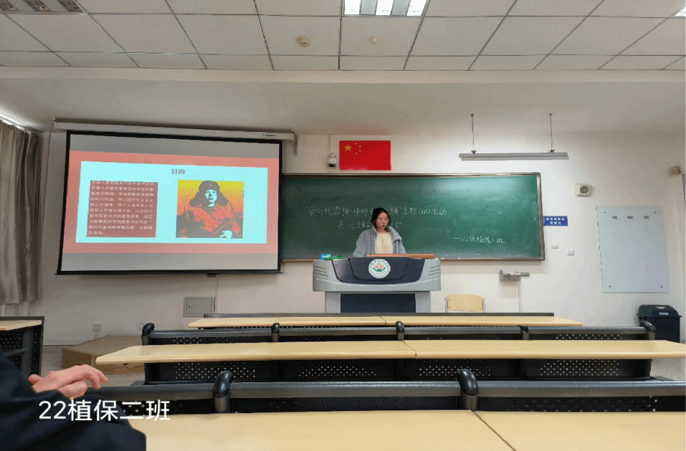 22级植保二班开展了“新时代雷锋精神耀北疆”主题团日活动。本次会议由团支书杨雨婷主持,班主任王骞老师及班级全体同学出席会议。