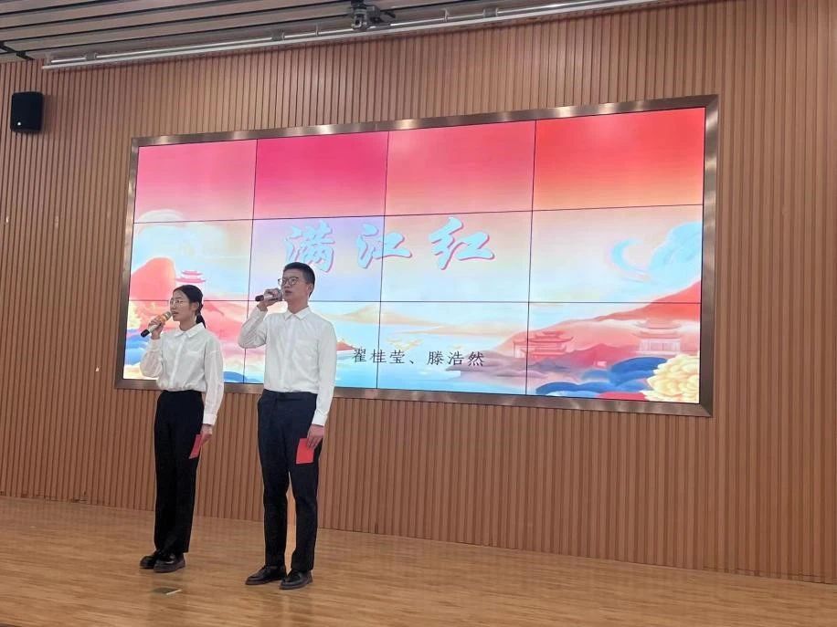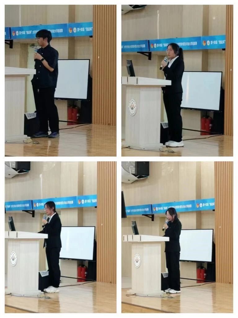 活动中,在主持人为大家介绍本次比赛评分规则后,各位选手结合PPT,用朴素的语言、深厚的情感,介绍了自己喜爱的书籍,并结合亲身经历与深切感受,有声有色地向大家阐述了自己对书籍的理解。其中,李羽菲同学在分享《史记》中讲到:“司马迁撰写史记,这背后的原因,既有父亲的遗愿,也有家族赋予的使命和责任感,更是为了传承中华文明和让后人了解中国的历史。司马迁认为通过论述历史和评判是非可以褒善惩恶,为天下仪表”。张雨欣在分享《云边有个小卖部》这本书时讲到:“通过阅读这本书,让我更多领悟到其实每个人的生命中都有一个王莺莺和程霜,命运无常,也许有些离别就是最后一面,也许某些相遇就是只有一次,所以,请珍惜生命中的每次相遇,珍惜照亮我们前行的那道光”。期间,翟桂莹和滕浩然两位同学为大家带来的朗诵《满江红》再次将现场氛围推到了高潮。