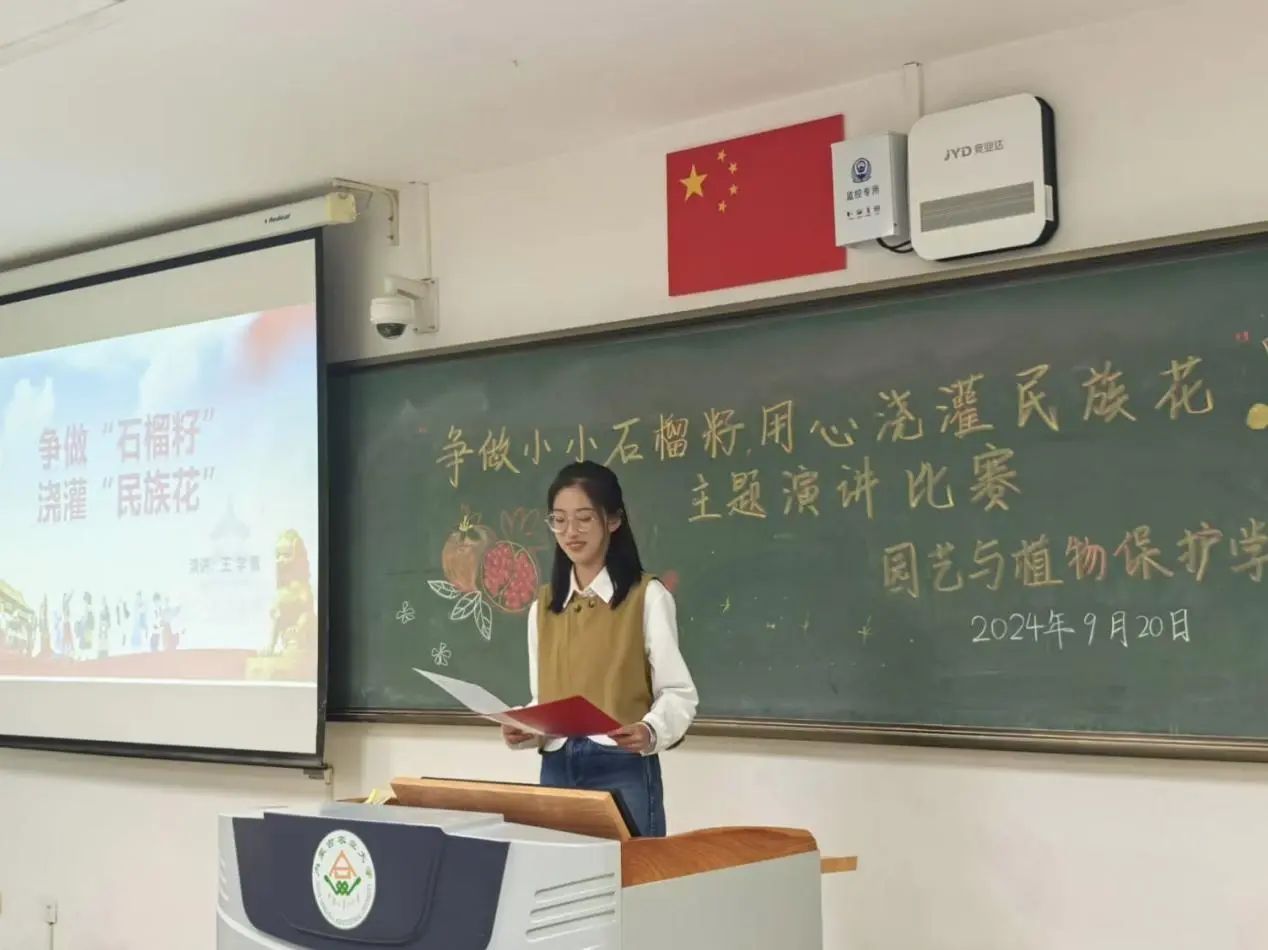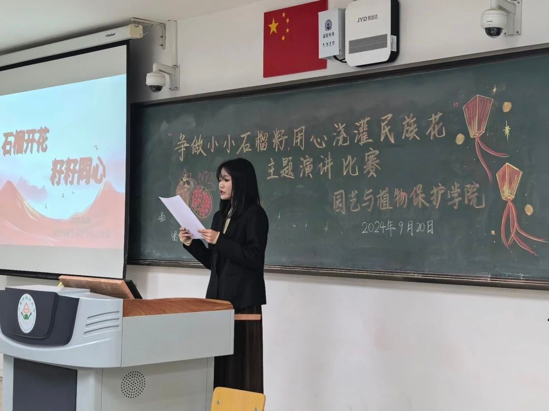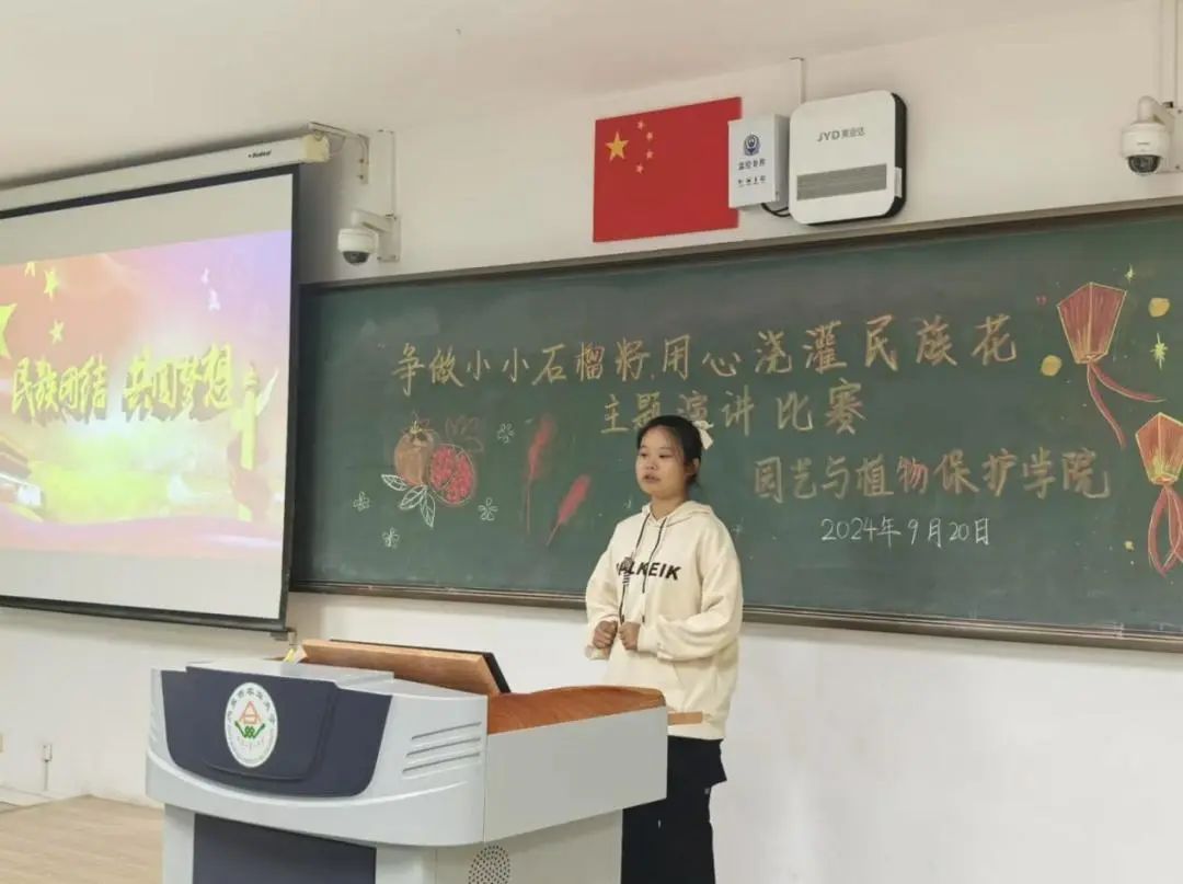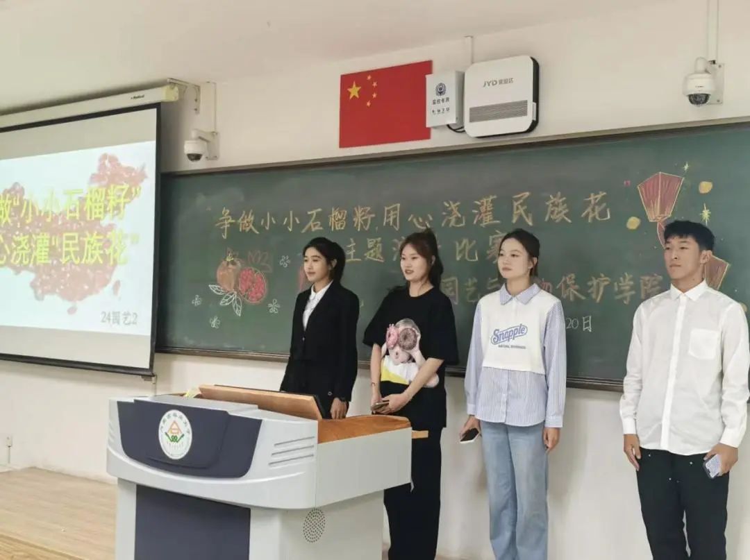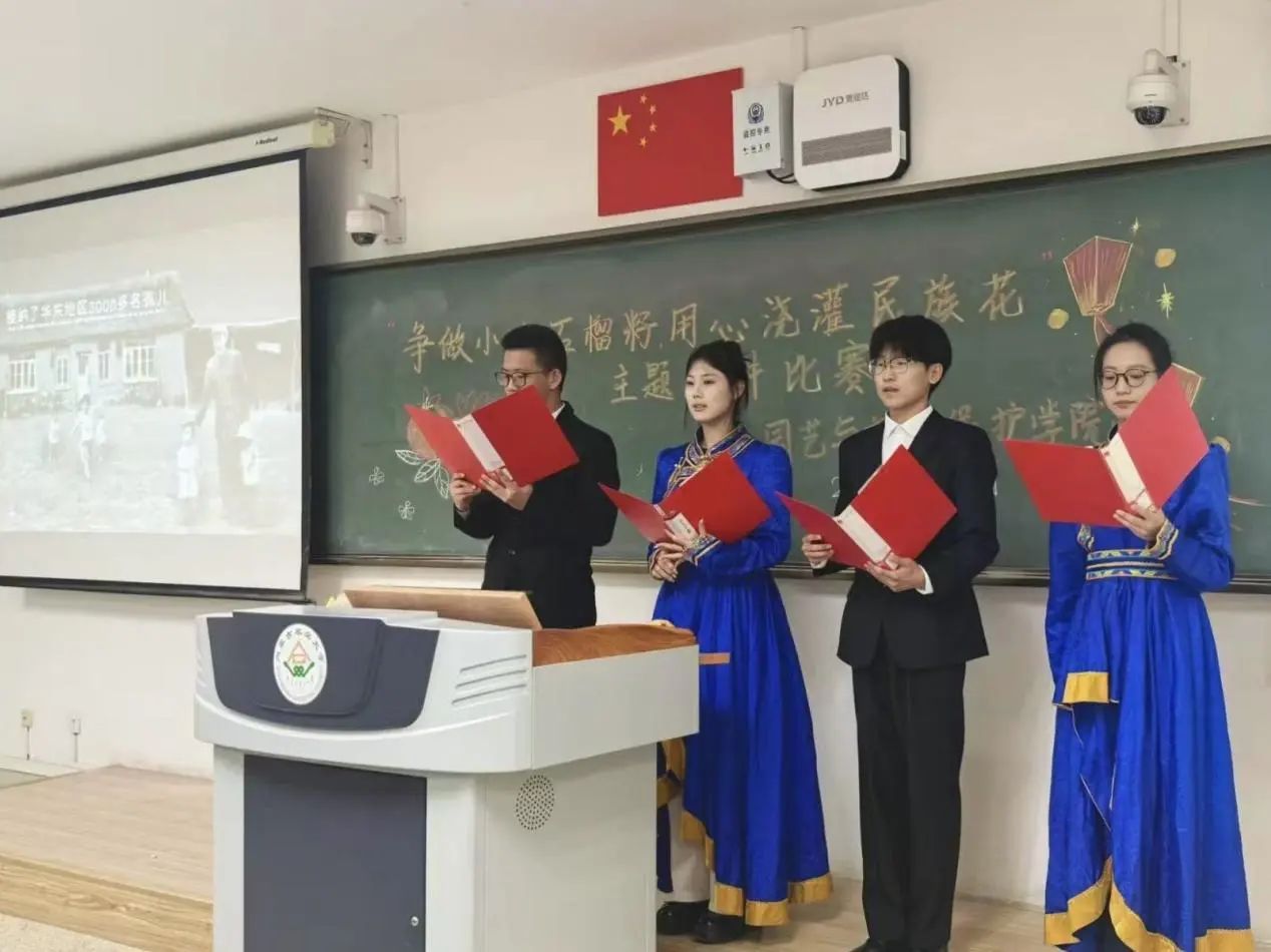 于南教222教室举办“争做小小‘石榴籽’,用心浇灌‘民族花’”主题演讲比赛。本次演讲参赛小组共10组。团委老师郝凤英和第七届分团委学生会主席、部长担任评委,女权部部长张司卓担任比赛主持人。