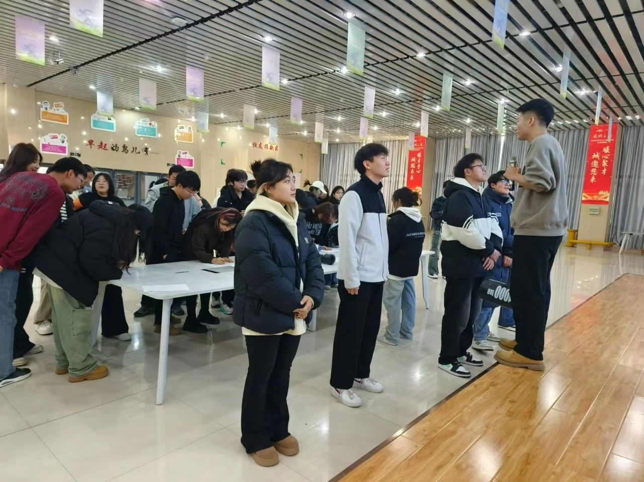 于新区创新创业学院三楼开展了学生干部团建活动。本次活动由心理健康中心负责,各部门学生干部积极参与。