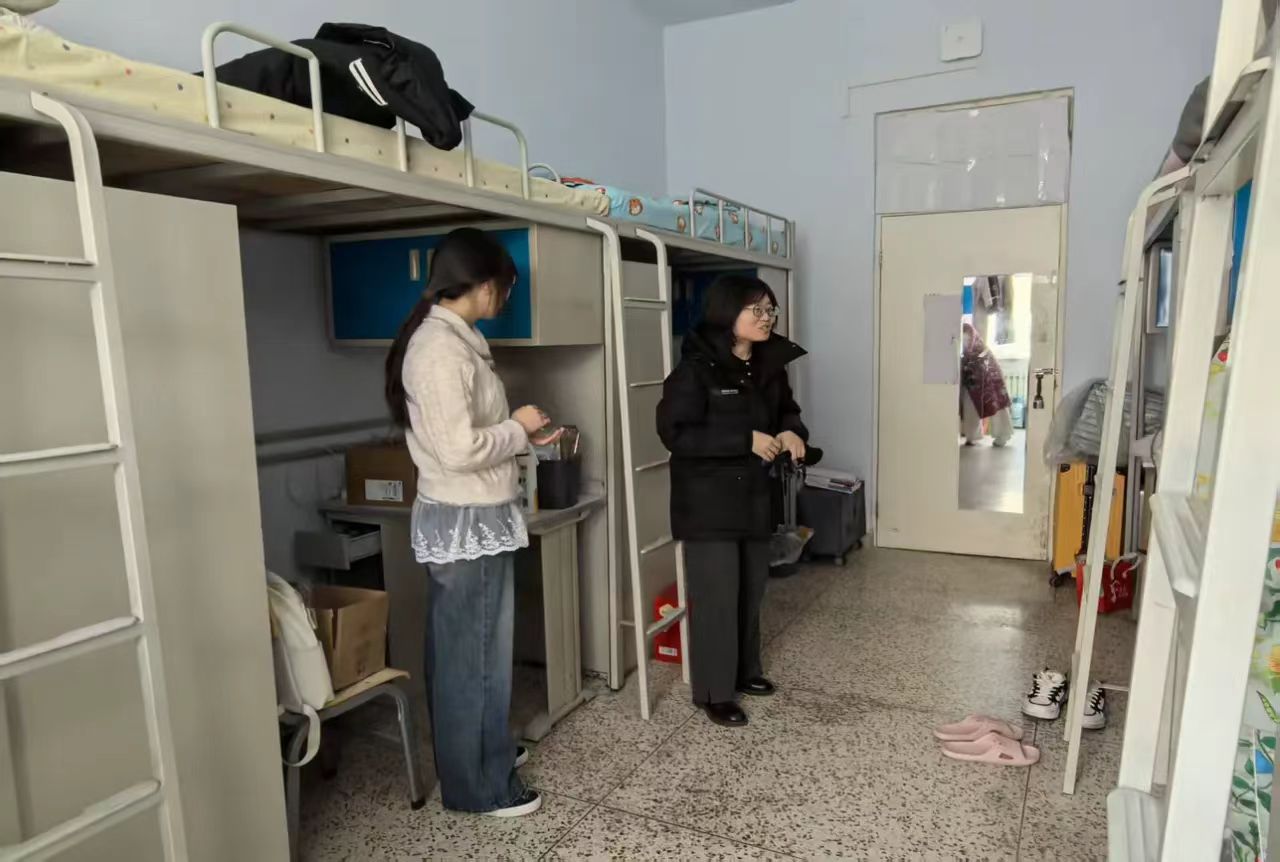 走访过程中,领导、老师们与学生亲切交谈,详细询问同学们的假期生活,了解大家的开学准备情况,关心同学们在学习和生活中遇到的困难。同时,老师们查看宿舍的卫生状况,提醒同学们要及时清理宿舍卫生,保持良好的生活环境。特别强调了宿舍用电安全,严禁使用违规电器,消除安全隐患。在与学生的交流中,老师们还鼓励大家尽快调整回学习状态,以饱满的热情投入到新学期的学习中,制定合理的学习计划,积极参加各类活动,不断提升自身综合素质。