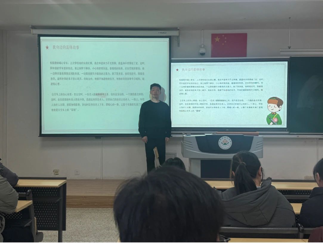 本次活动先以一段记录雷锋生平事迹的视频拉开帷幕,雷锋全心全意为人民服务的钉子精神深深打动了在场的每一位同学。随后,团支书组织大家围绕“我身边的雷锋故事”展开讨论。同学们踊跃发言,结合假期社会实践的经历,分享对雷锋精神和志愿服务精神的理解和感悟。有的同学谈到关爱空巢老人和福利院儿童是雷锋精神的体现;有的同学表示积极参与志愿服务活动,为社区、为社会贡献力量,便是传承雷锋精神和志愿服务精神。