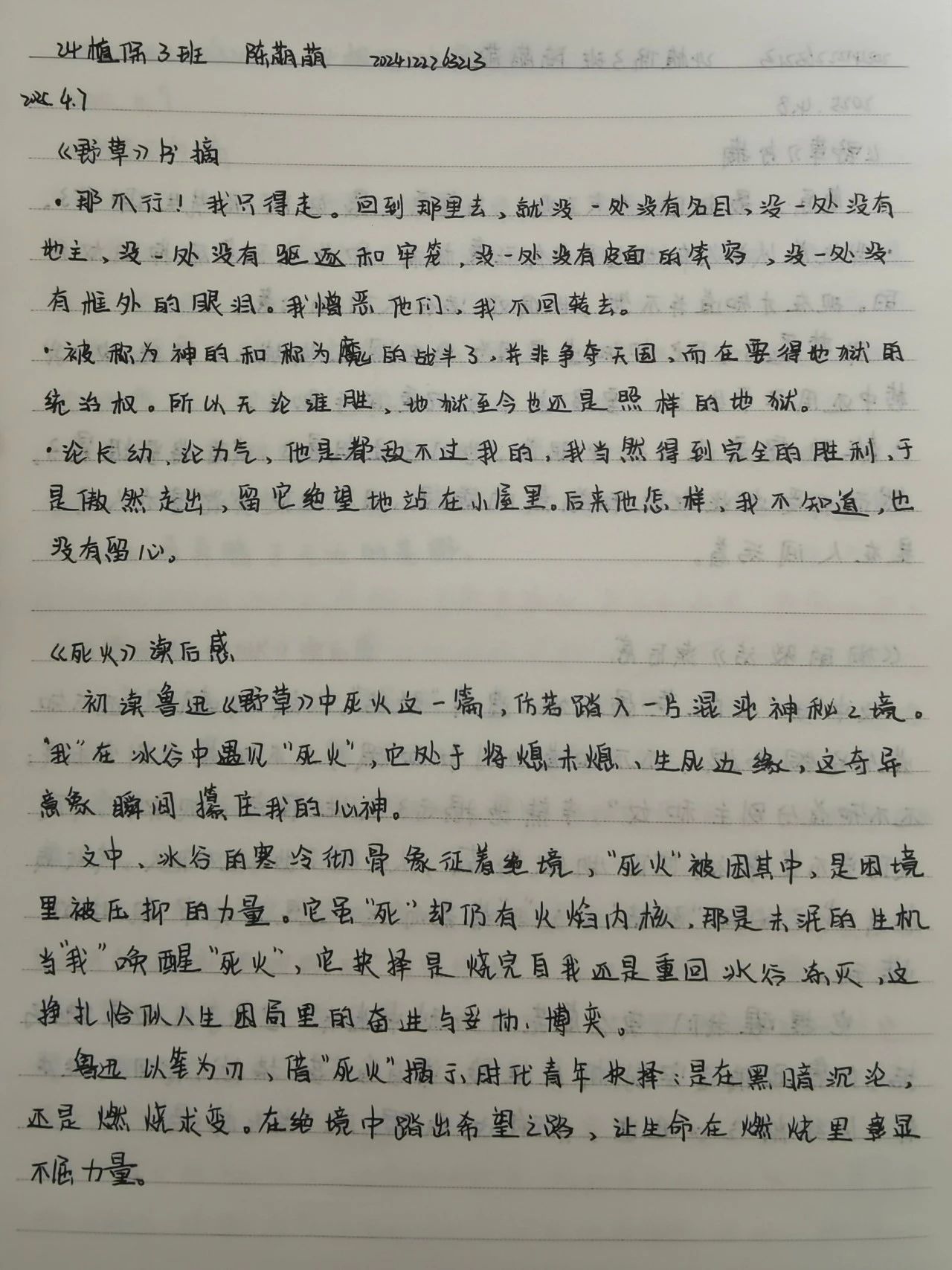 在本次读书分享活动第一阶段中,有许多同学都在阅读过程中认真做笔记,将自己的思考和感悟记录下来。这些笔记不仅内容丰富,而且形式多样,让人耳目一新。经筛选,特展示12位同学的优秀笔记。