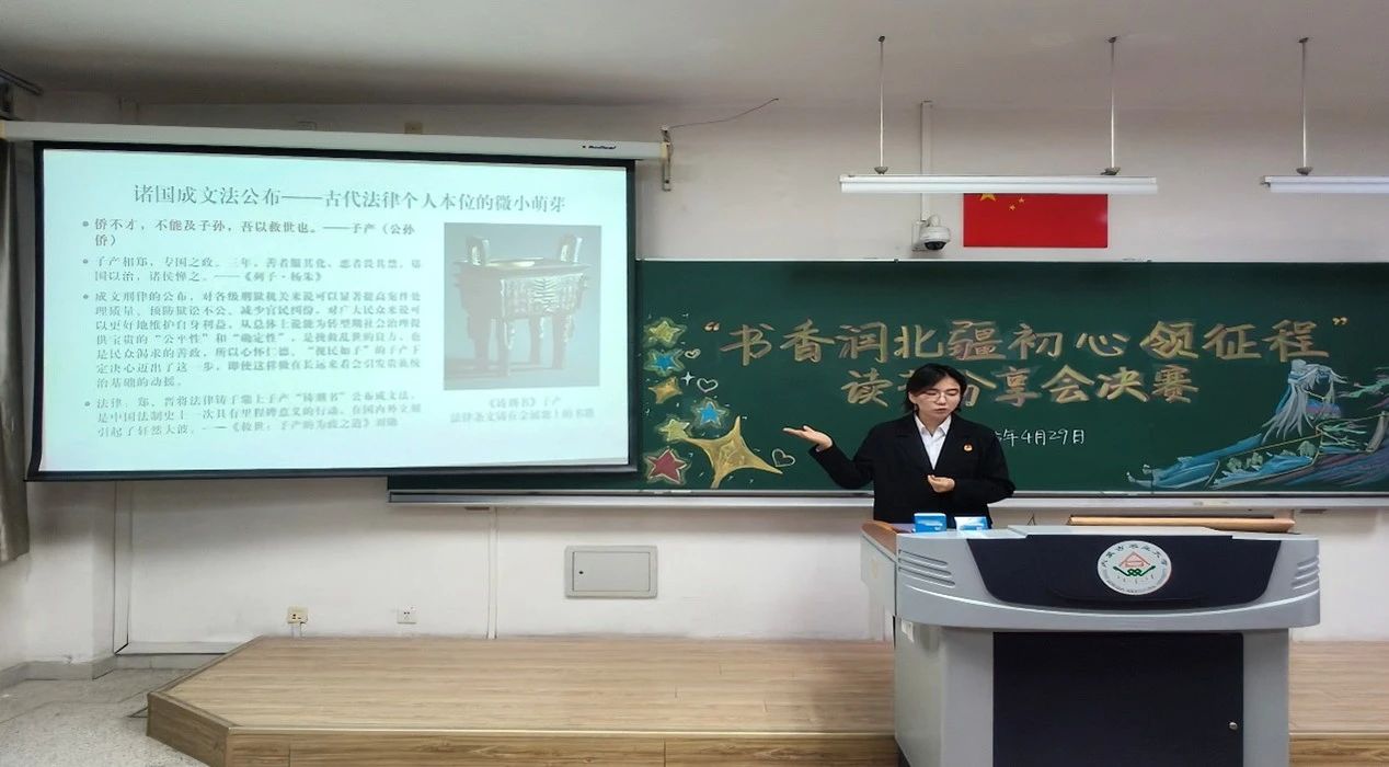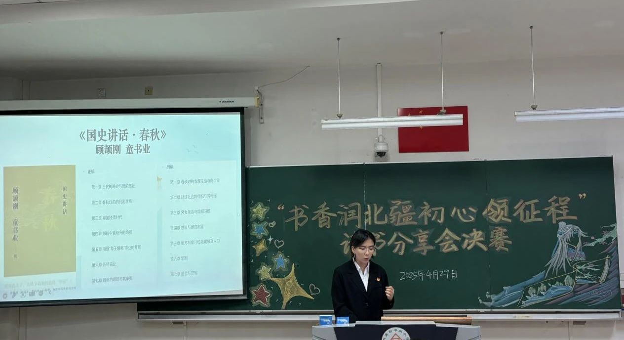 联合举办“书香润北疆,初心领征程”共读活动之读书分享会决赛于4月29日晚在南教113教室举行。10名同学进入总决赛,校关工委副主任孙伯筠、图书馆老师霍菲、学院团委老师郝凤英担任评委。本次活动由张明烨同学主持。