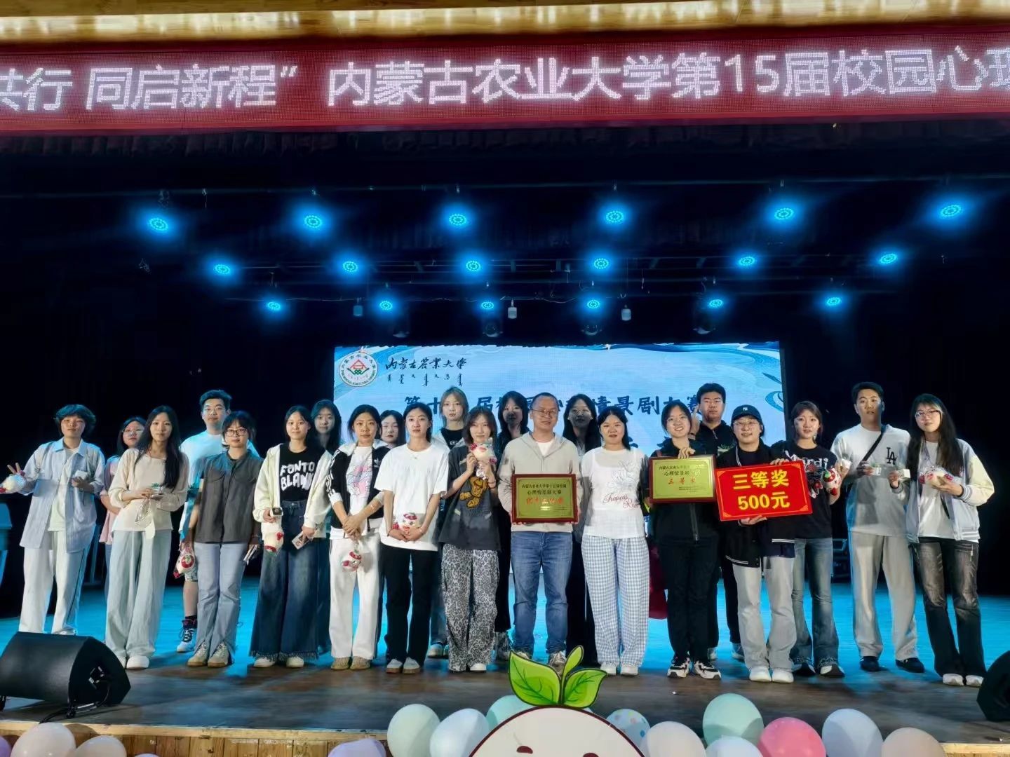 5月25日下午,内蒙古农业大学第十五届校园心理情景剧大赛决赛在东区礼堂举行,168开奖官网 作品《此岸无岸》在比赛中荣获三等奖,学院荣获优秀组织奖,指导教师尚飞荣获优秀指导教师奖。