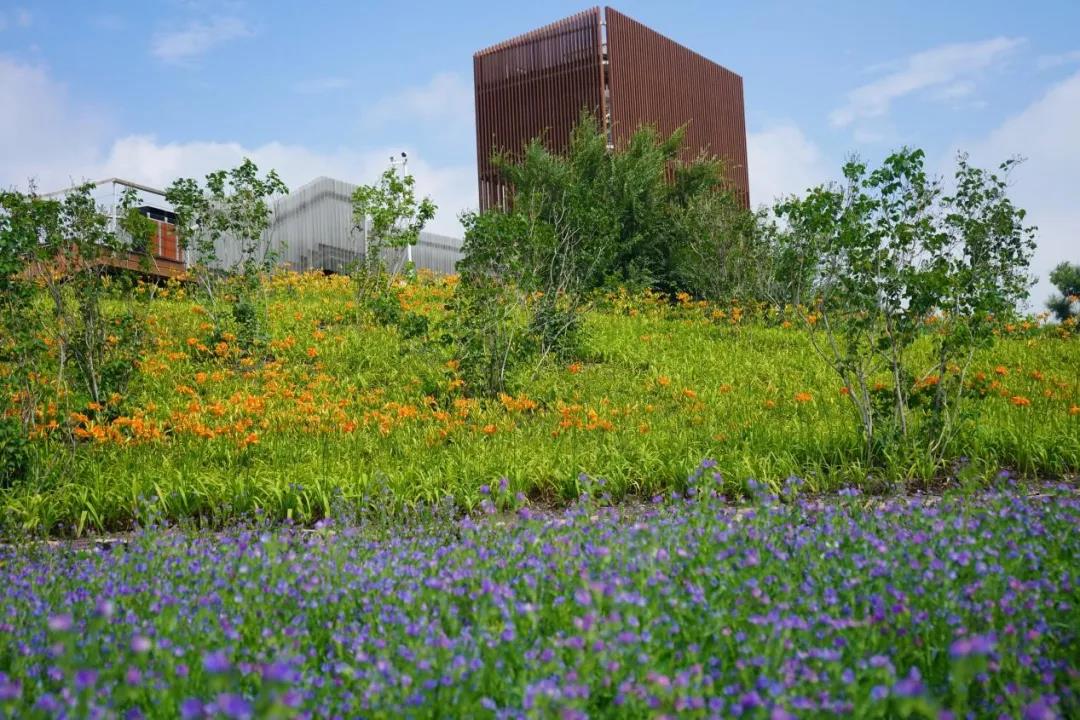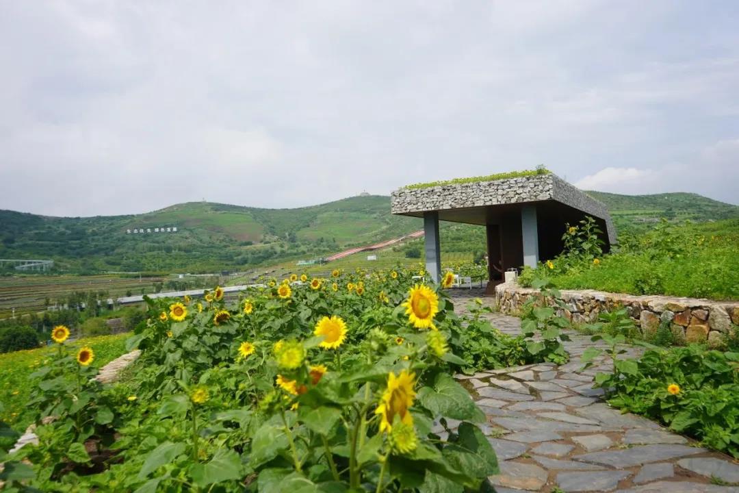 云影台是在原矿石开采遗留下来的矿坑内修建的一座景观塔,经生态修复后在周围缀以花田绿野,登高望远就能一览天骄天骏生态风情。