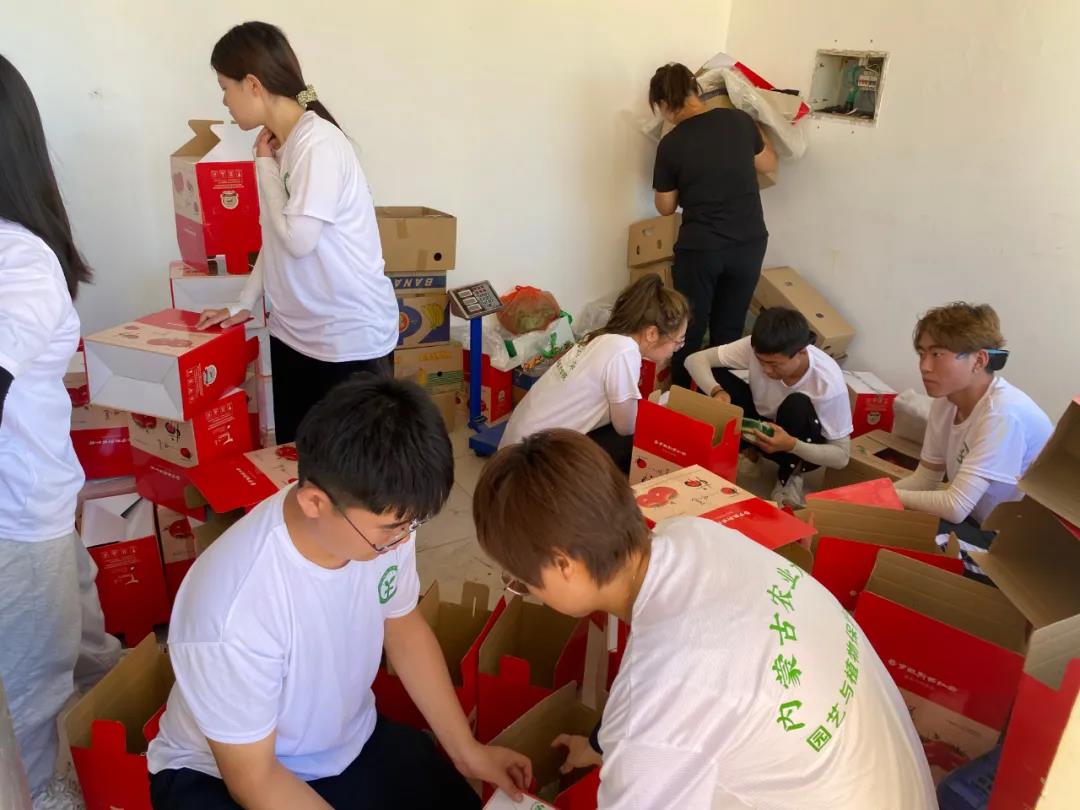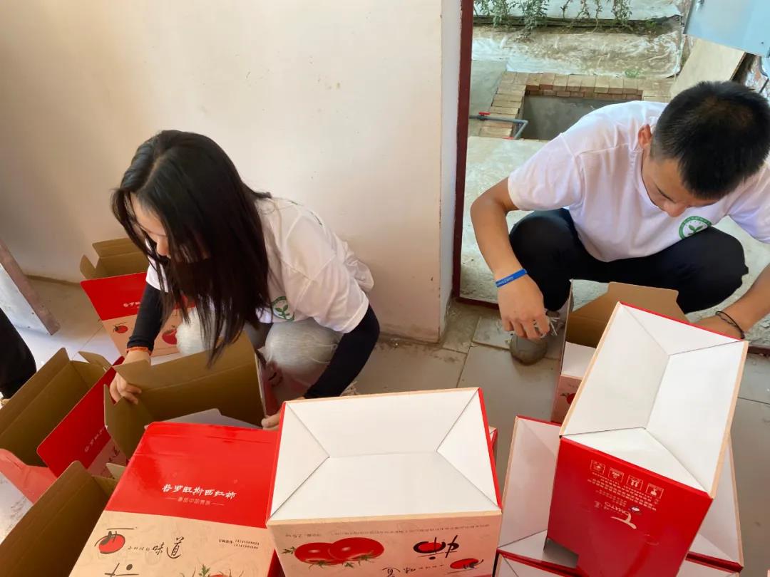 炎炎烈日下,乡村振兴实践队的师生们在农业园区小西红柿种植大棚前进行包装打箱,园区的技术员大姐告诉同学们如何挑选优质西红柿。她讲到:鲜红色的西红柿,番茄红素含量较高,胡萝卜素含量高一些;美味的西红柿通常要圆、大、有蒂,硬度适宜,富有弹性。 这样的西红柿品质比较好,也会受到顾客的青睐。同学们在工作中认真遵循技术员讲解的要领,用心的挑选装盒。
