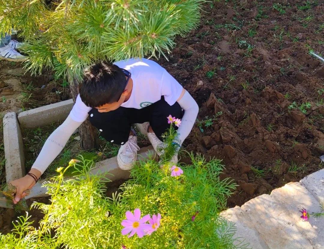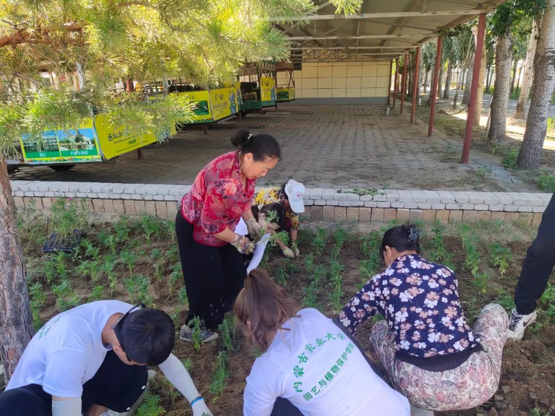 团委郝凤英老师的带领下来到鄂尔多斯市万通农牧业科技有限公司农业园区的花园里进行花苗栽种。经过几天的实践,同学们的栽种手法日益增长,动作非常娴熟,大家戴上口罩、手套,拿上铲子等工具,现场一派热火朝天的劳动景象。除草、挖坑、植苗、填土……在大家互相配合下共栽种了1200棵花苗。期间,时不时地还听到这里阿姨对同学们的夸赞“都说现在的娃娃吃不了苦,这几个大学生每天有点活做的可认真了”,同学们听到夸赞都心里都美滋滋的。