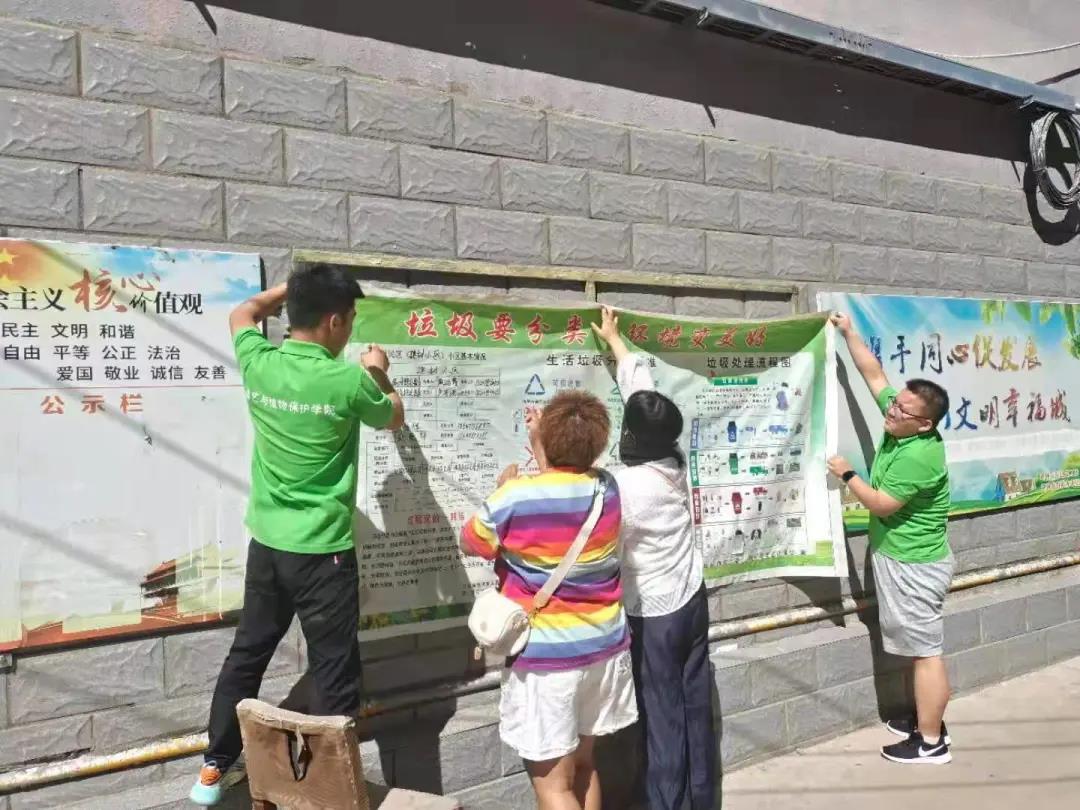 国情观察队人员分成两队开展工作。一队人员负责帮助服务中心工作人员进行辖区居民基本信息登记工作,另一队人员跟随服务中心人员进小区常规巡视。上午10:00,在建材小区巡视时发现小区宣传板跌落,我们及时进行现场勘查,提醒过往车辆和人员注意跌落的宣传板。待工具齐全,我们将宣传板揭下,在地面进行清理和维修,重新粘贴至墙面。