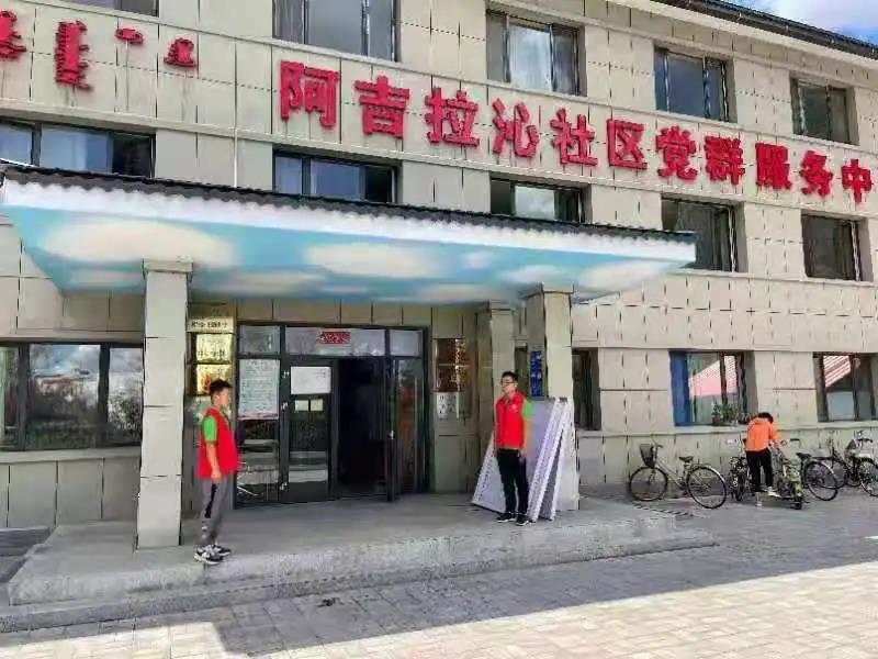 国情观察实践队在队长邓全才的带领下从学校出发,乘坐公交到达阿吉拉沁社区党群服务中心进行实践。实践队由社区居委会郭宇星副书记接待并安排具体实践任务。