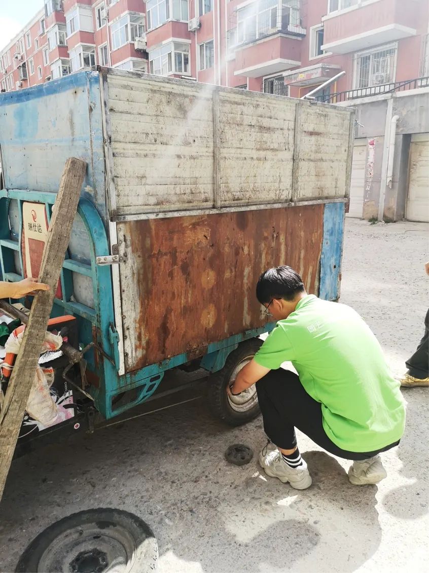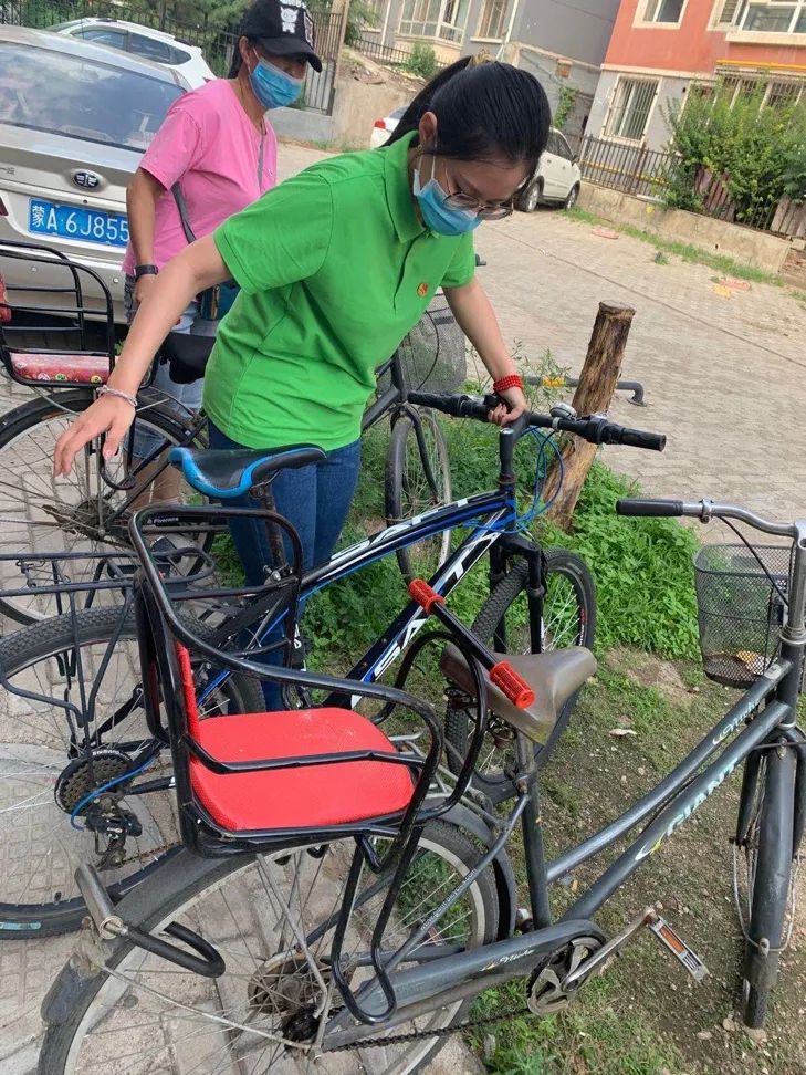 在与社区负责人员进行交流沟通后,队员们很荣幸地参与到了此次“创全国文明城市”活动中。郝老师根据实际情况,强调大家要注意安全,克服个人困难,团结互助。随后,队员们被分为3个小组,分别跟随社区工作人员一起深入社区开展工作,有的队员协助工作人员摆放违规停放的自行车;有的队员清理贴在社区墙壁上的广告单;还有的队员修理车辆。大家对任务区域进行了集中清理,虽然天气炎热,但队员们不畏热、不怕脏、不喊累,使得负责区域的环境面貌焕然一新,看着变了颜色的白手套,再欣赏一下自己的劳动成果,同学们都开心的笑了。