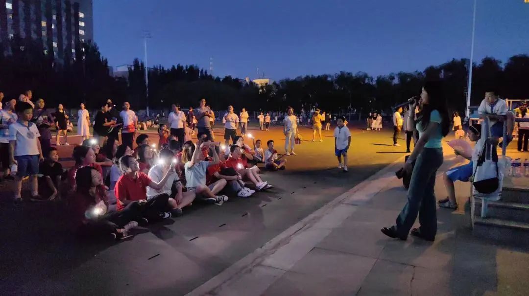 在比拼休息中,艺术团的赵雪娜和雷雨晨还献上了歌唱表演,大家都不约而同地打开手电筒汇聚成点点星光,整个过程其乐融融。活动在大家高声齐唱《内蒙古农业大学校歌》结束。