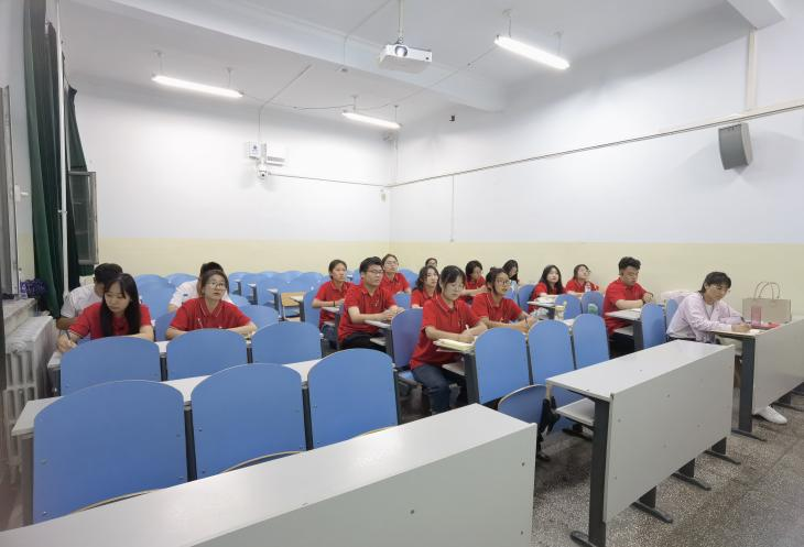 “薪火代相传”实践队在东主122教室开展主题教育视频课,团队指导老师郝凤英带领实践队成员一起通过视频课程集体学习。