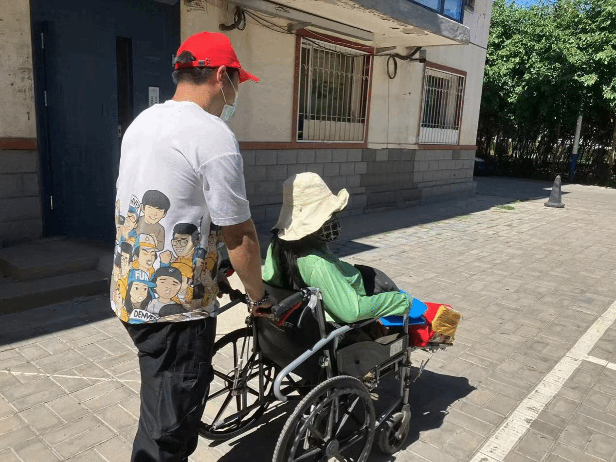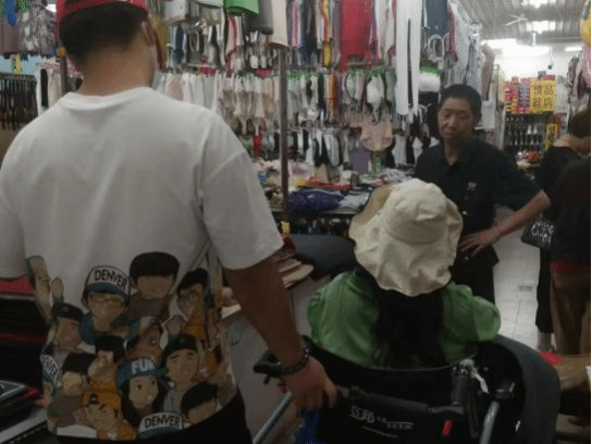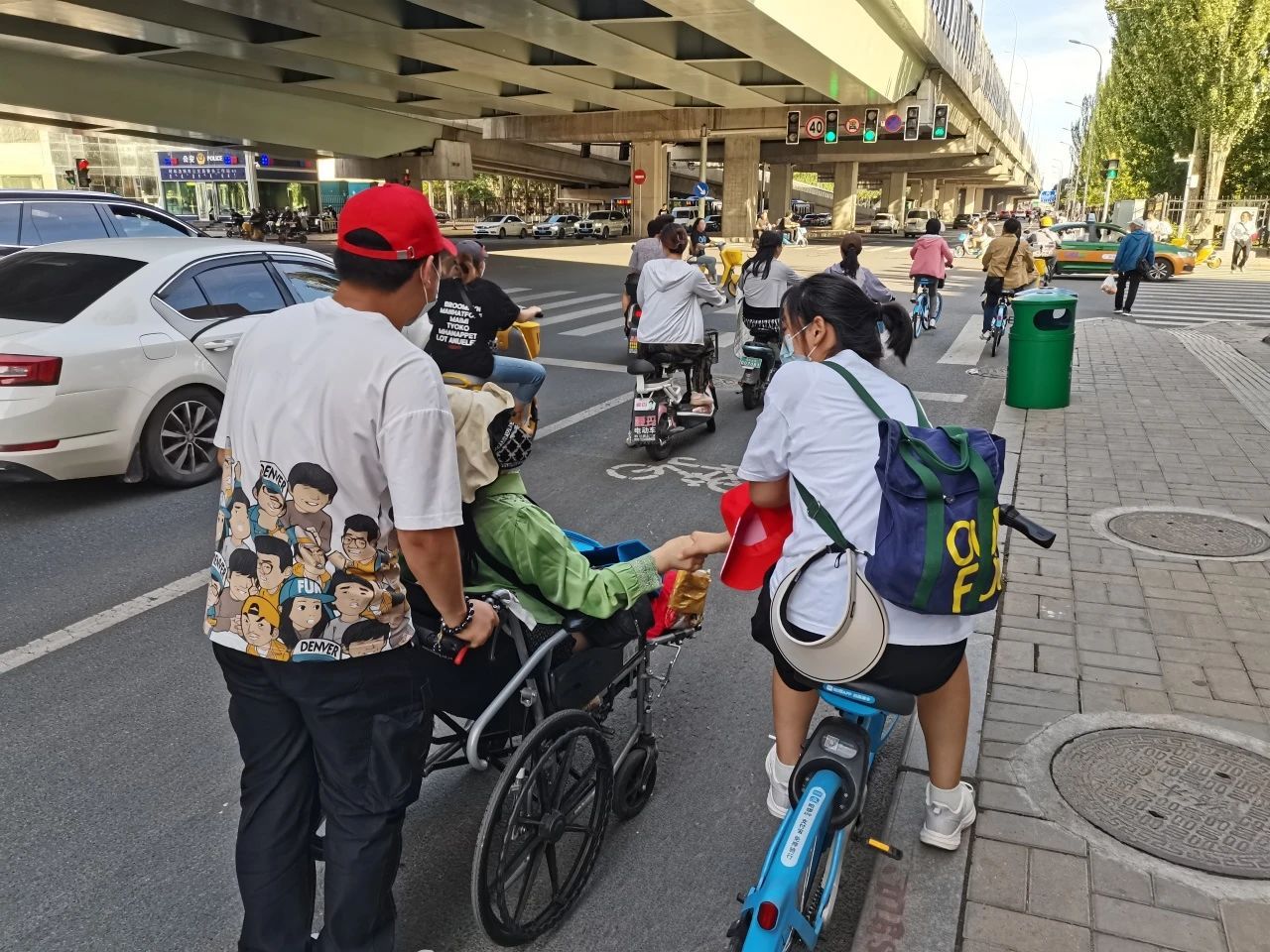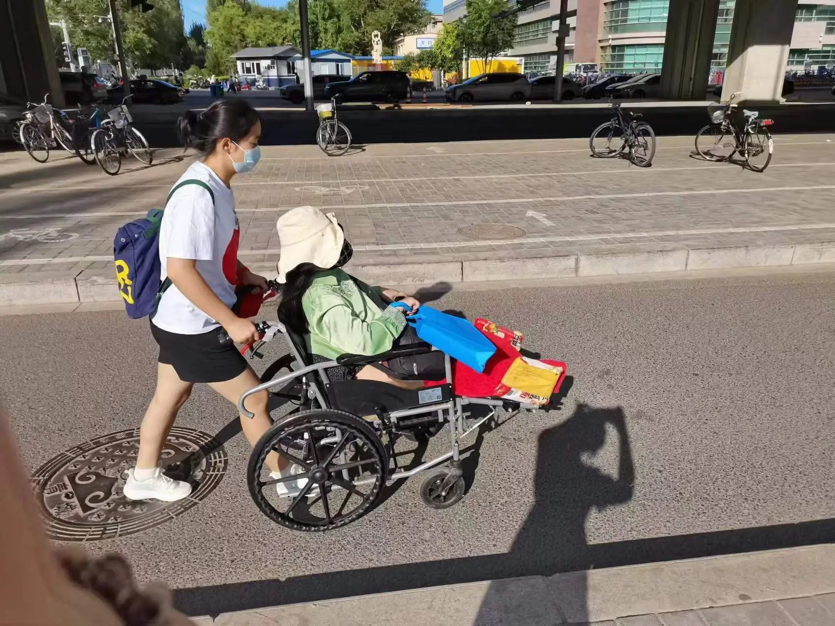 队员们了解到大姐想买的东西后,就主动询问贩卖摊位在哪里,轮流推着叶大姐进行购买。购买完毕后我们将叶大姐安全送回家中,一路上叶大姐还关心队员们的学习和生活,包括之前看望过她的同学她也时刻惦念着。